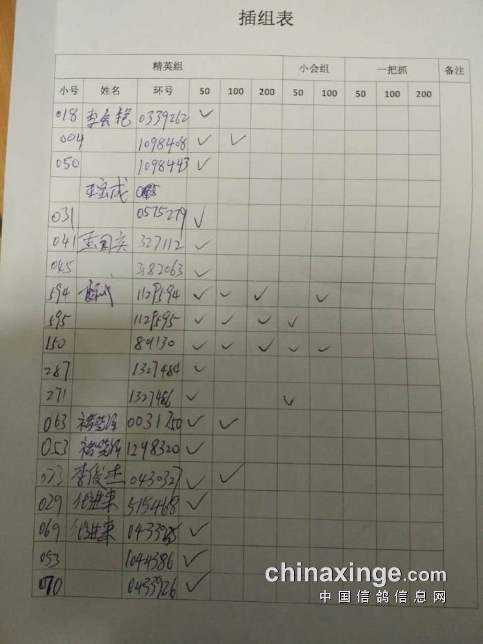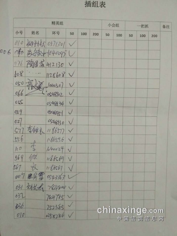 25年大兴“金洲杯”千元环一关有效归巢(按棚号)