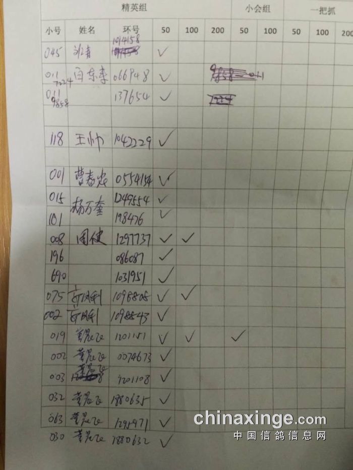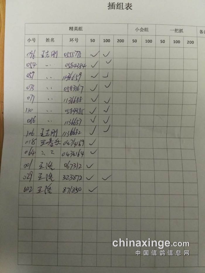 25年大兴“金洲杯”100环一关有效归巢(按人名)