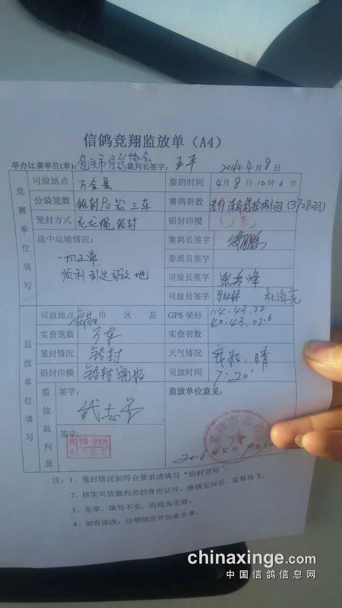 2016年包头市信鸽协会春季400公里监放单及报到电话