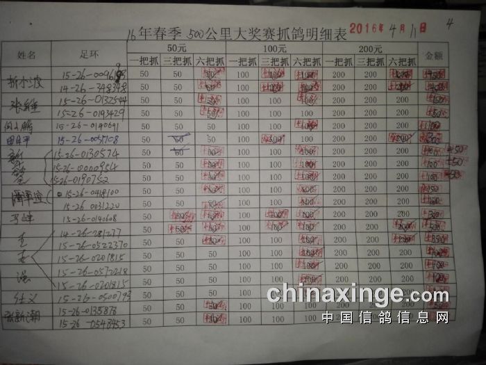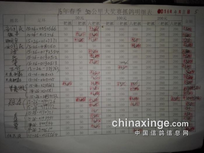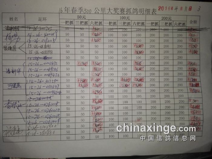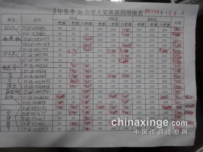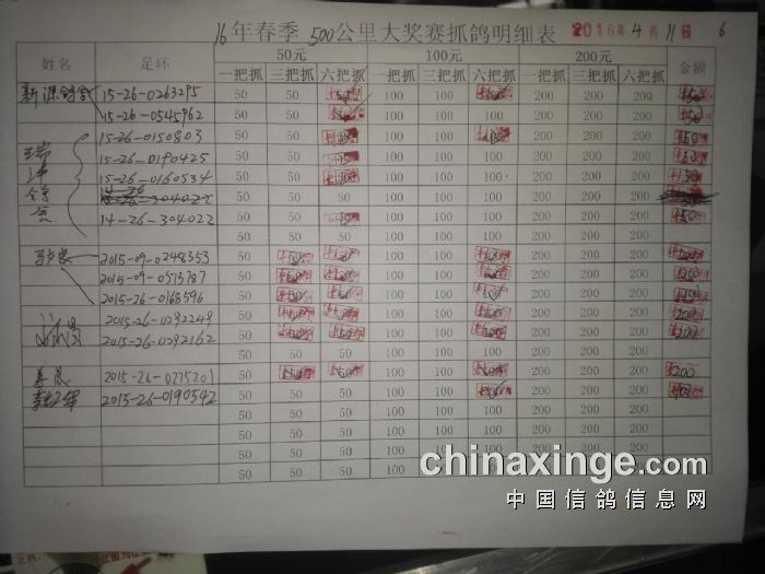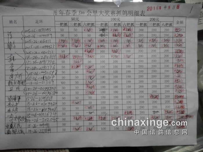 灞桥鸽会16年春季500公里指抓详单