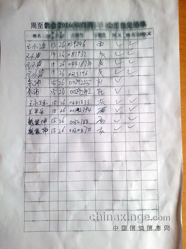 陕西西安市周至县信鸽协会