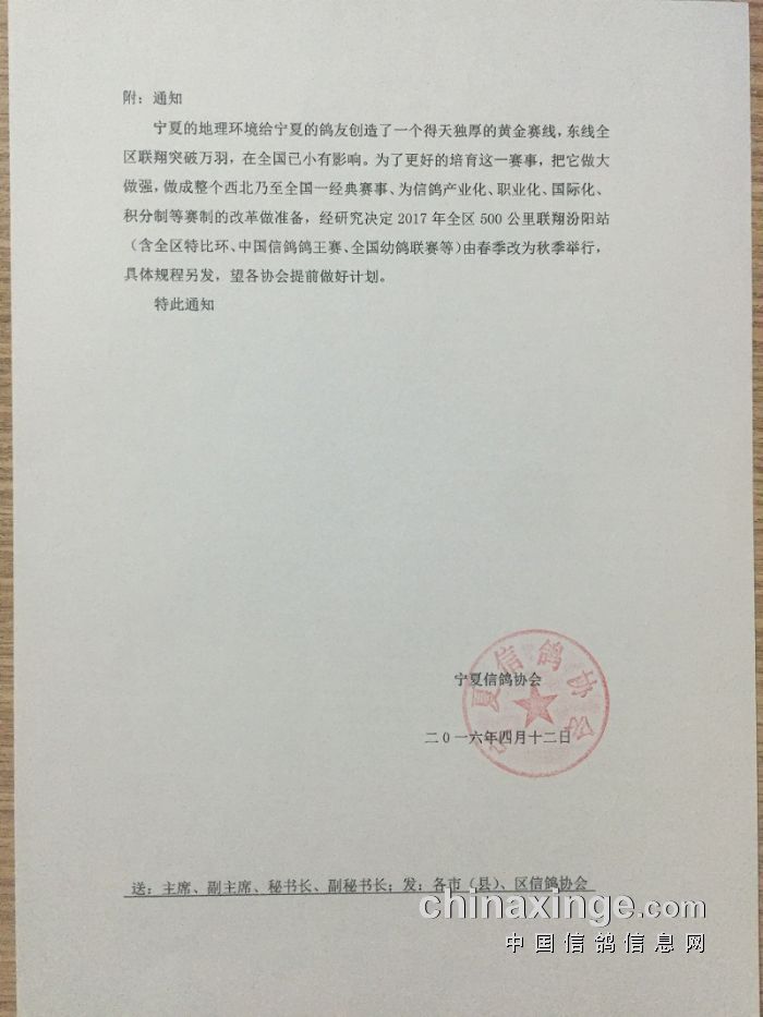 宁夏信鸽协会通知