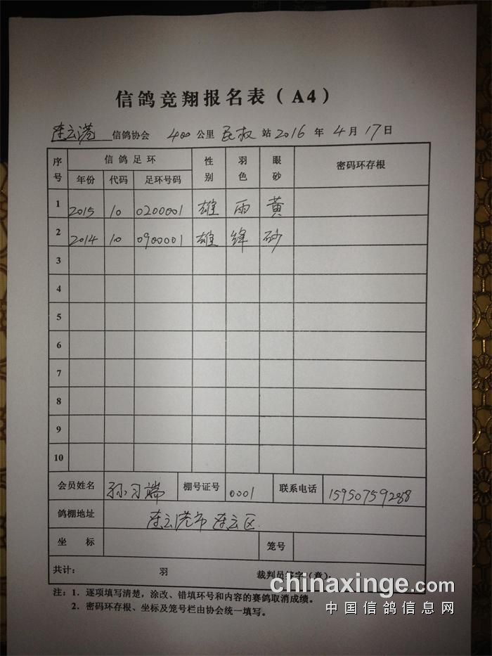 从2016年春季400公里比赛开始正式使用新式报名表,为使会员正确填