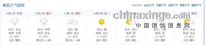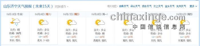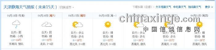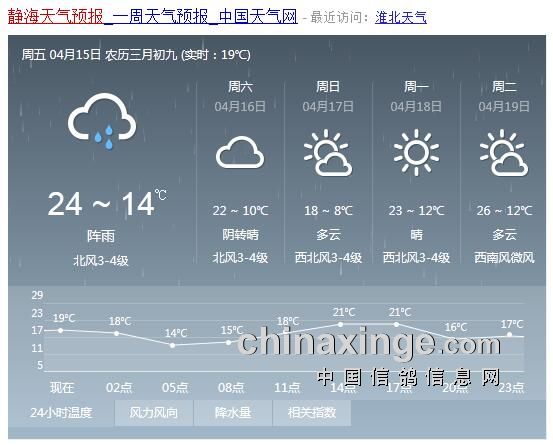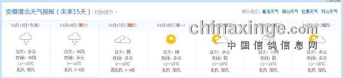 淮北市信鸽协会2016年春季550公里静海站,原定16号本周六集鸽;但据最新天气预报显示,目前显示周日司放地静海气温下降天气多云,协会顾忌会因天气情况看不到太阳延误开笼时间,且周五至周六沿途有降雨过程;为避免不必要的损失,经淮北市信鸽协会研究决定集鸽日期推迟一天;周日集鸽、周一放出,周一司放地静海至淮北沿途预报一路晴天,到时赛鸽可早放出;带来不便敬请谅解。以下是沿途天气预报: