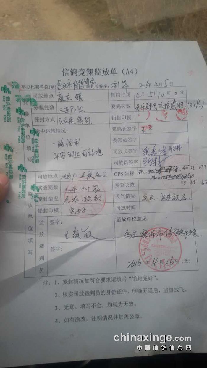 包头市信鸽协会春季500公里在康庄镇2016年4月16日早7:40分开笼,赛鸽走势良好,预祝参赛会员取得好成绩!
