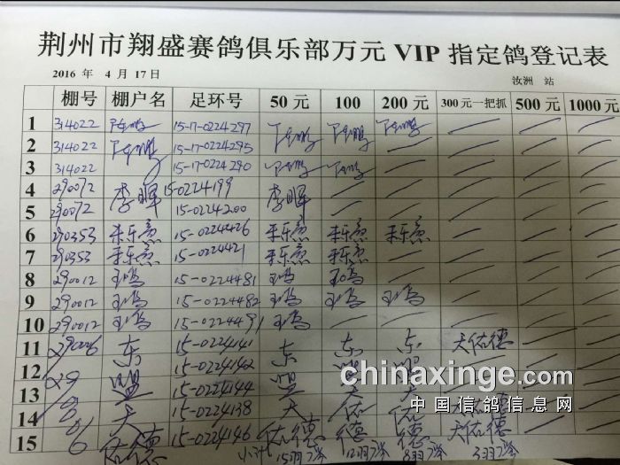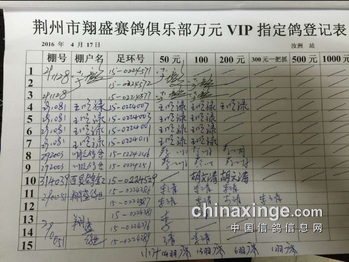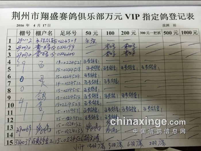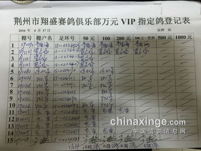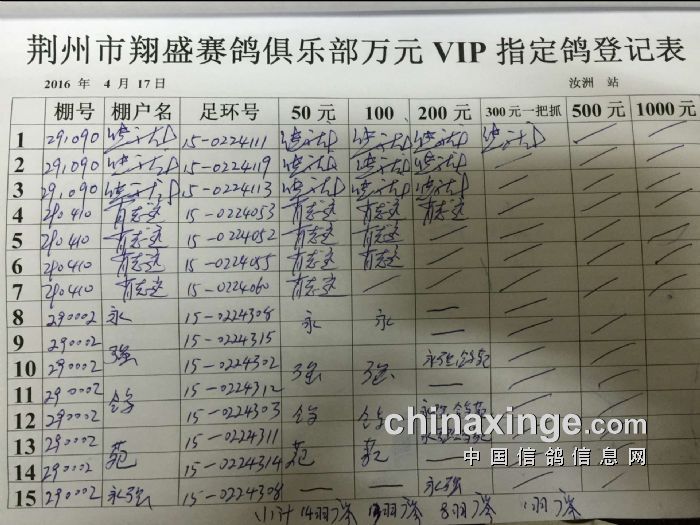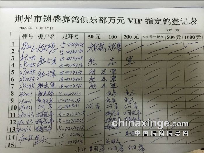 2016年4月17日汝洲430公里蓝天杯万元组好一岁第一关比赛指定鸽及装车上笼