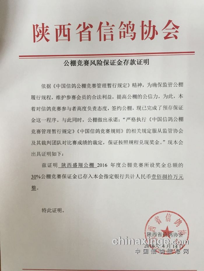 陕西盛翔公棚竞赛保证金存款证明