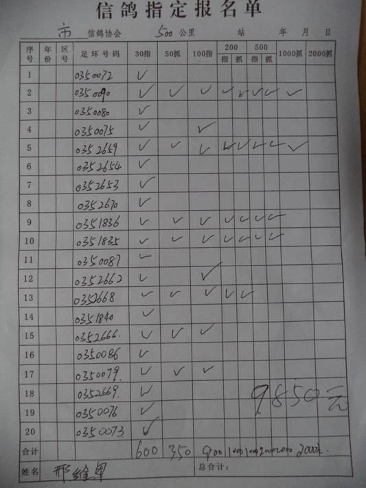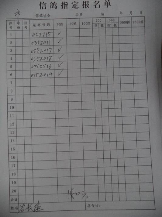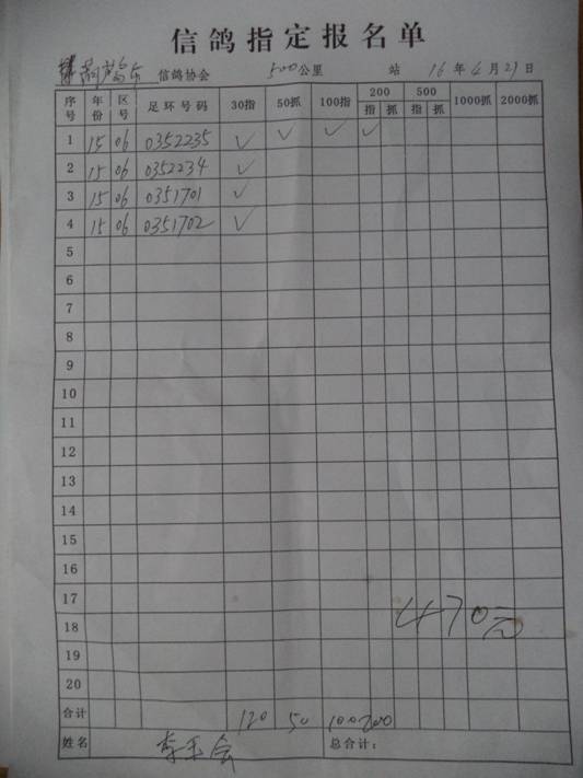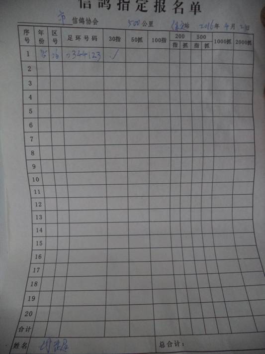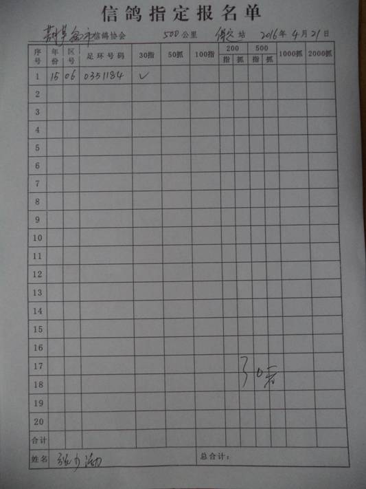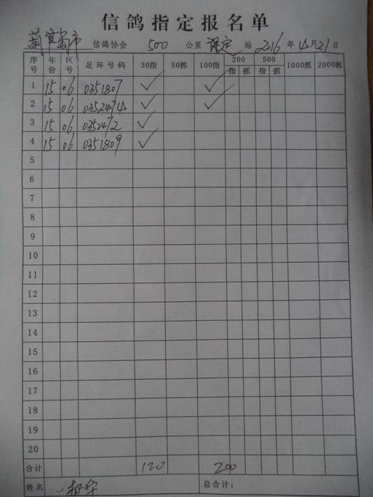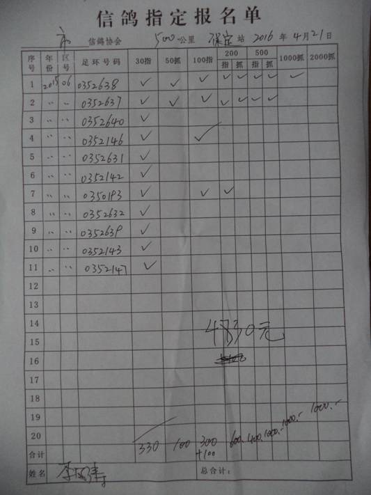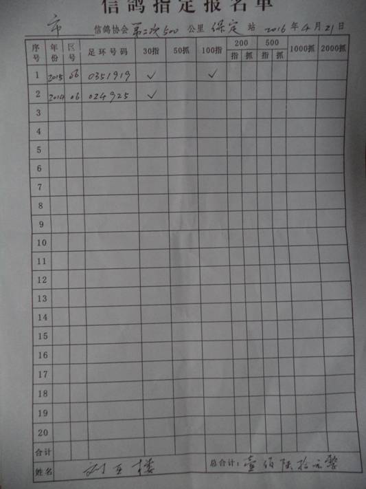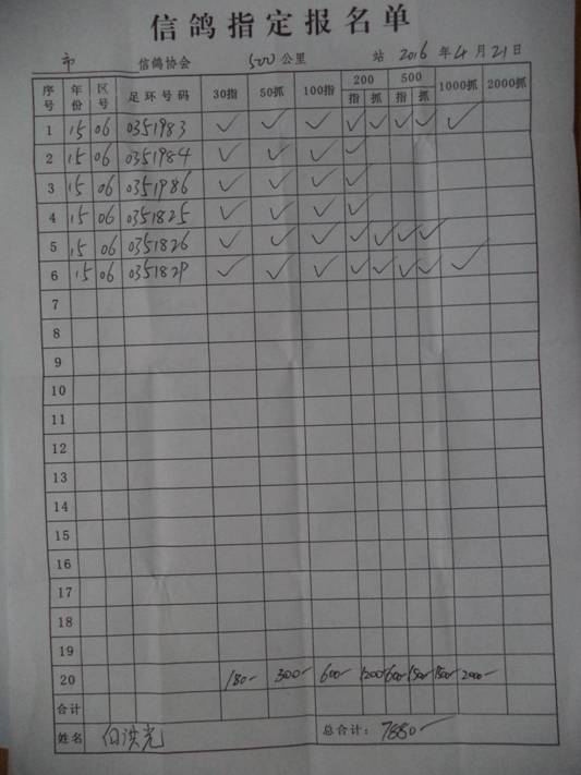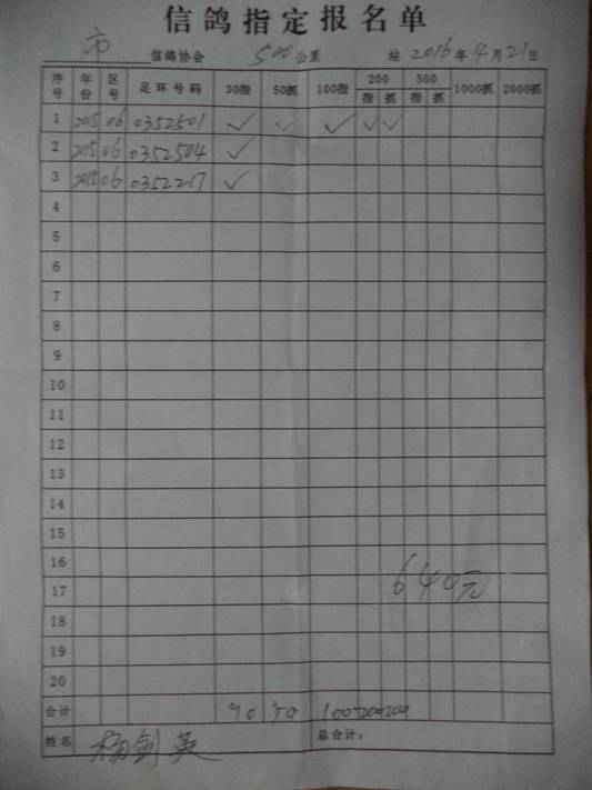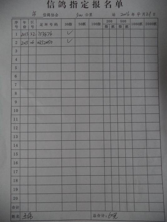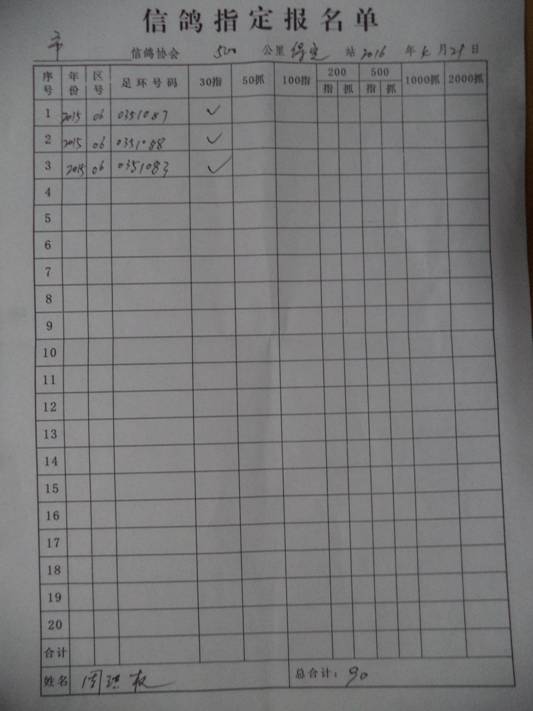 2016春大奖赛第二关指定鸽名单2