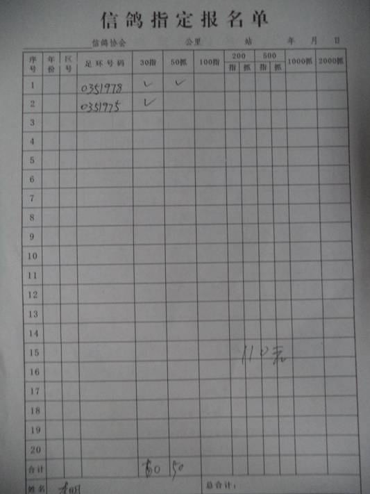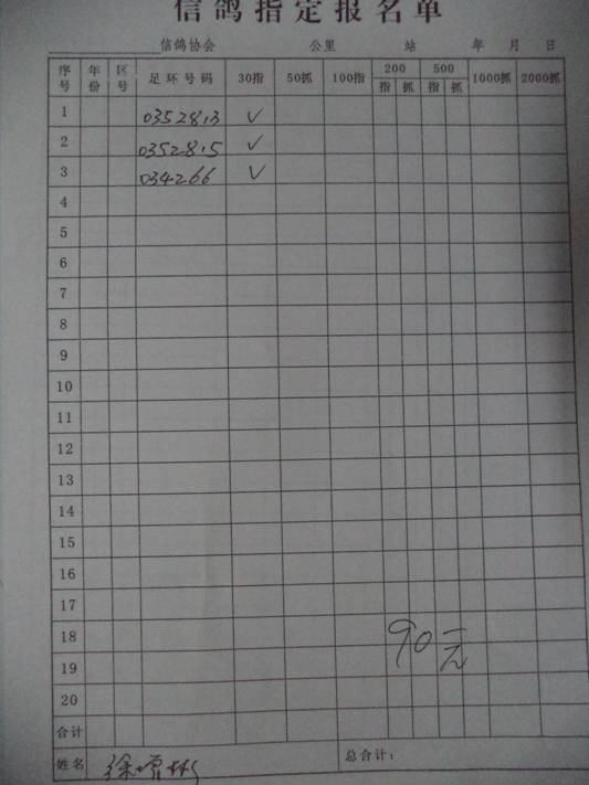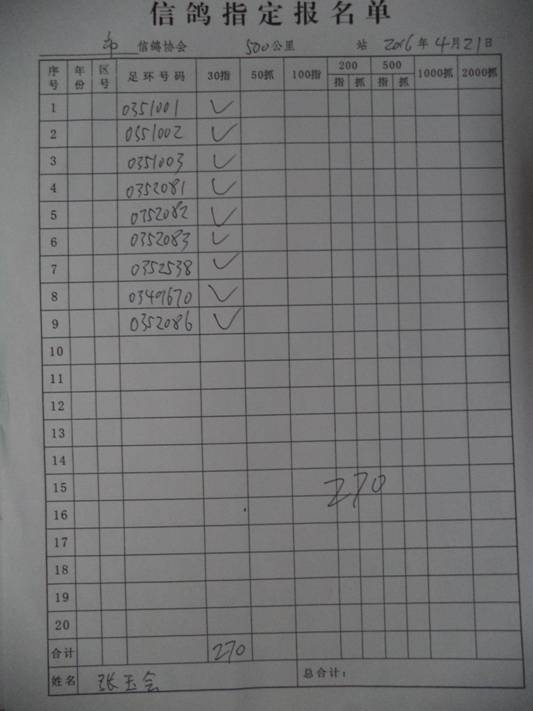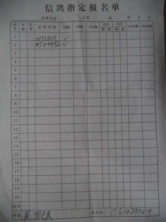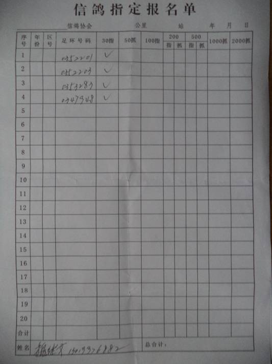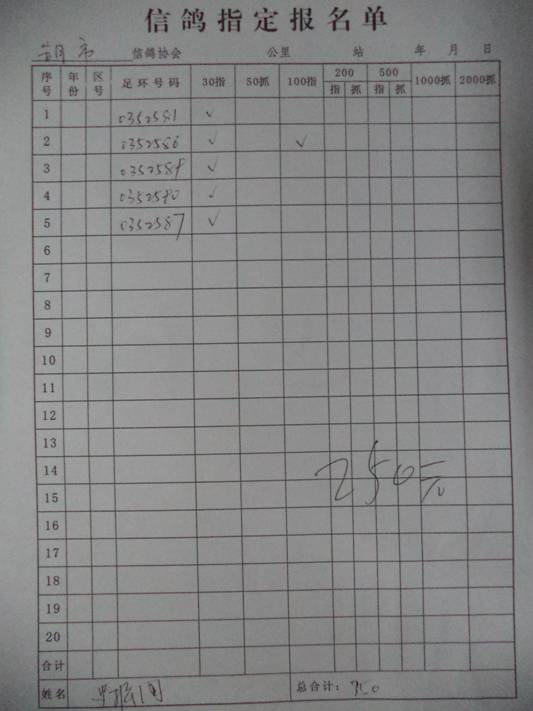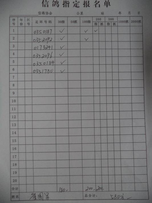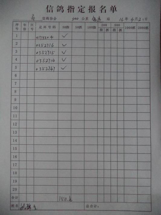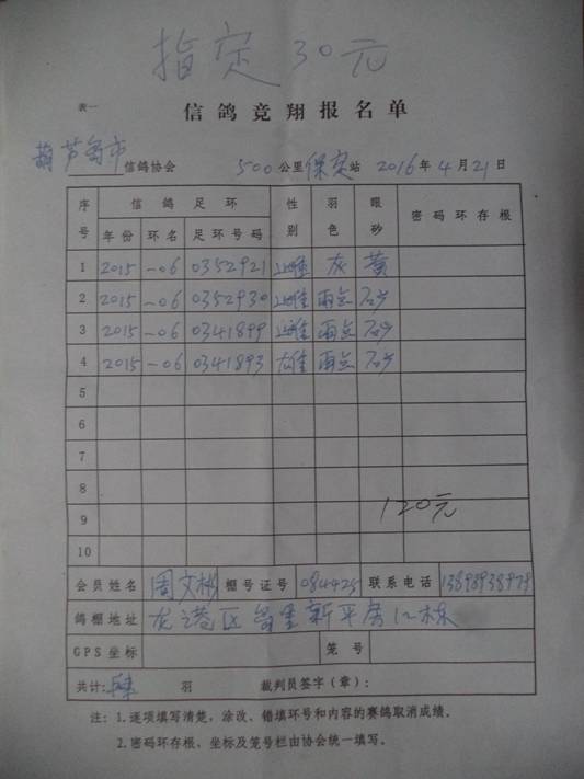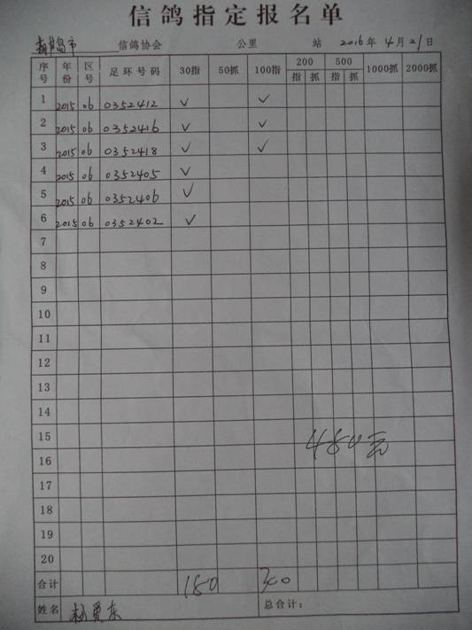 2016春大奖赛第二关指定鸽名单3