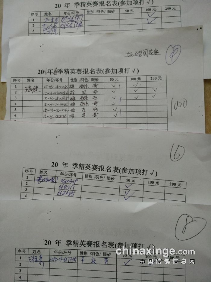 B组100元 26羽 录取3 名 1- 2名各1000元 3名360元