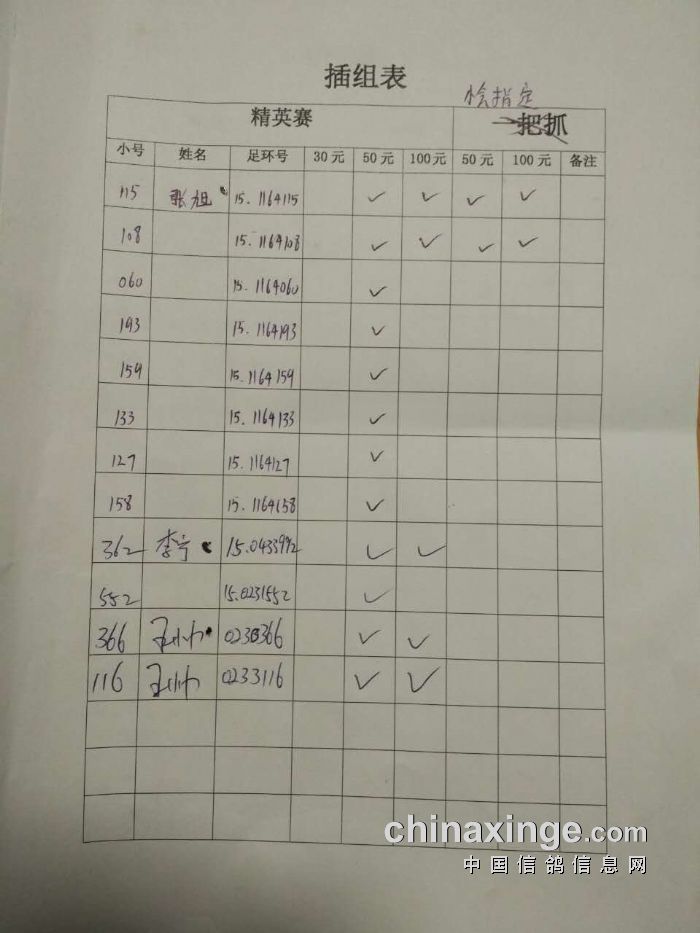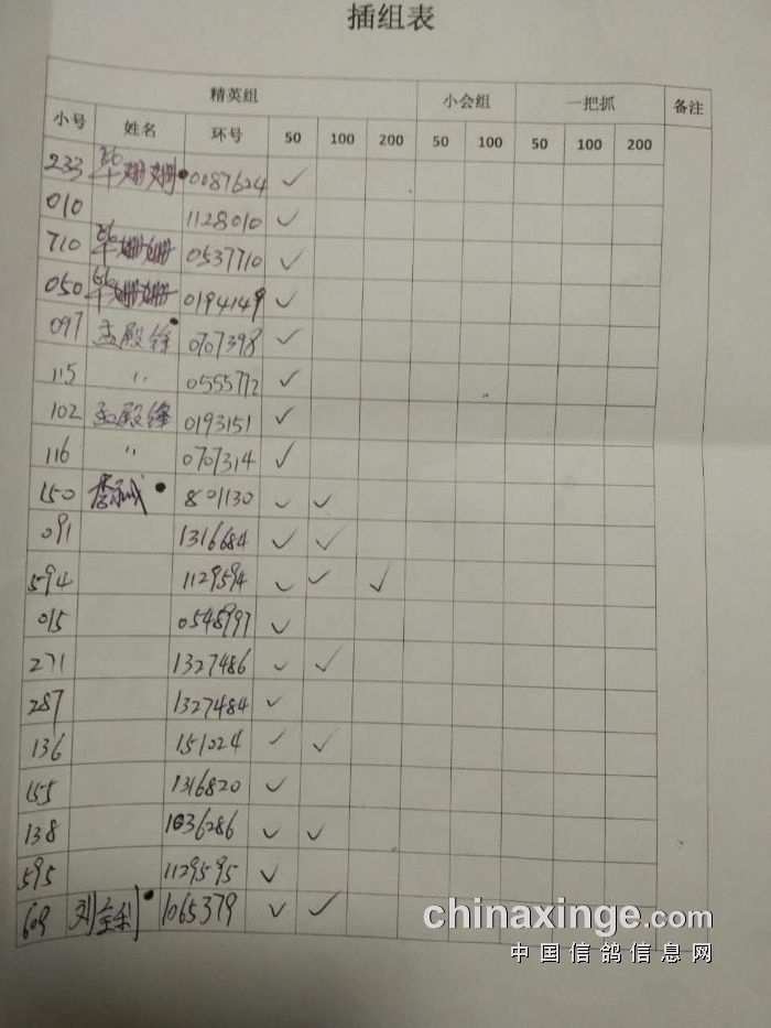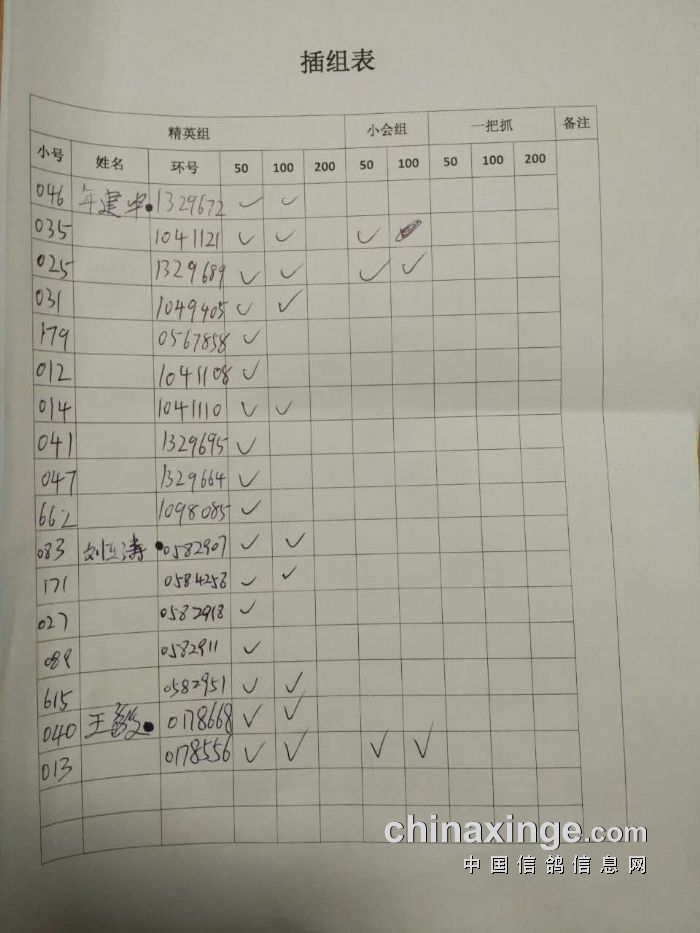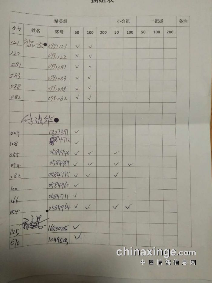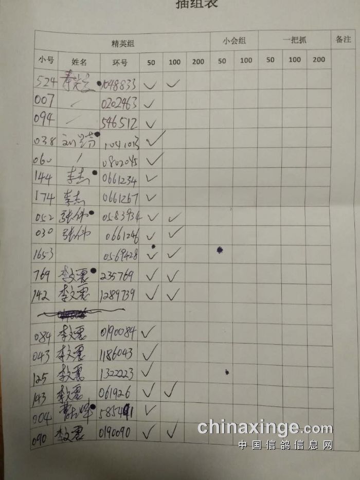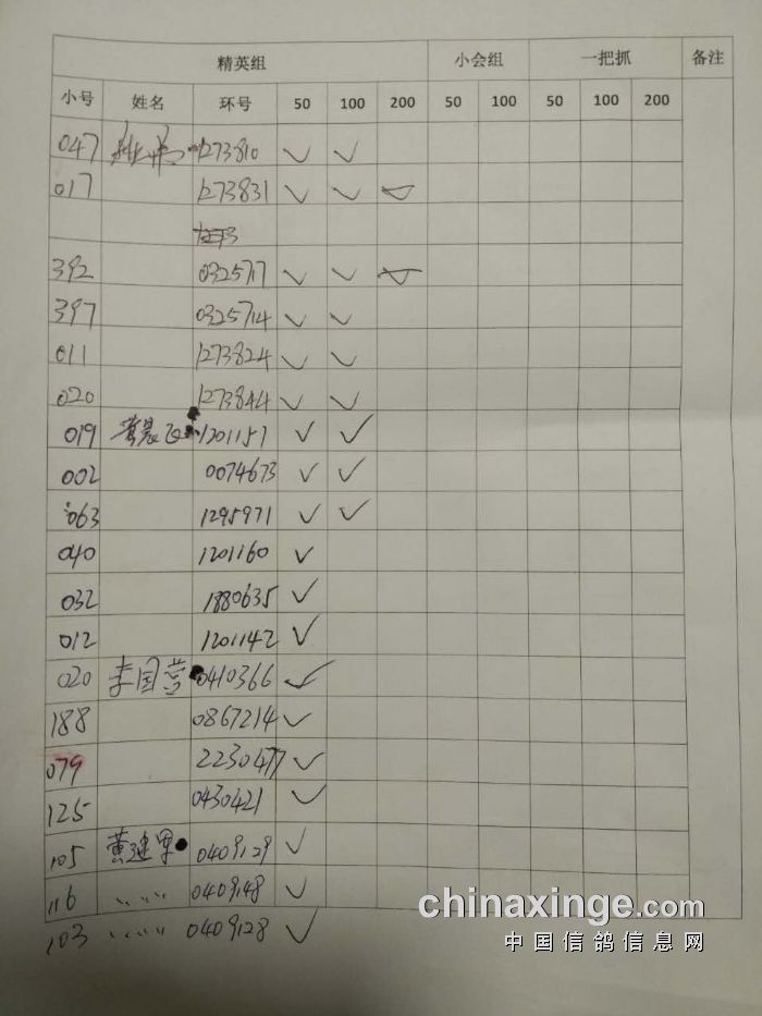 25年大兴“金洲杯”千元环一关有效归巢(按棚号)