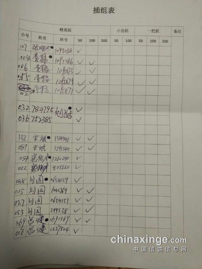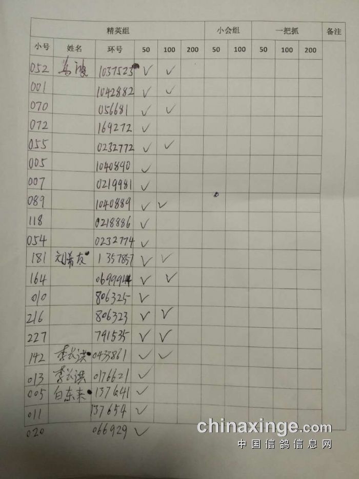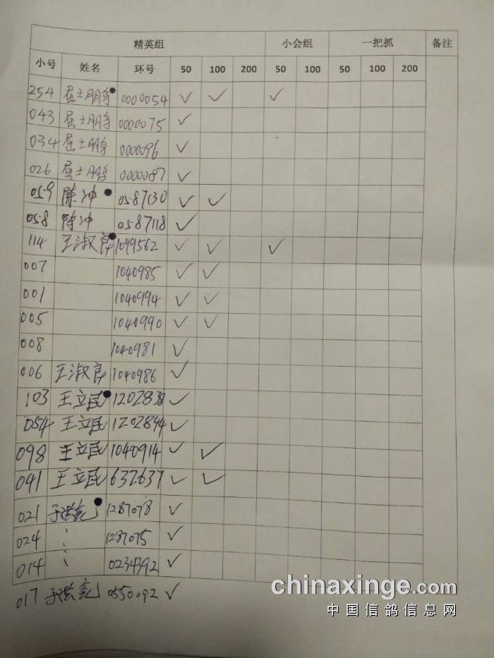 25年大兴“金洲杯”100环一关有效归巢(按人名)