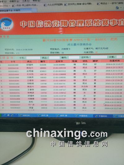 廊坊市2016年春国家赛霸州县冠军验鸽