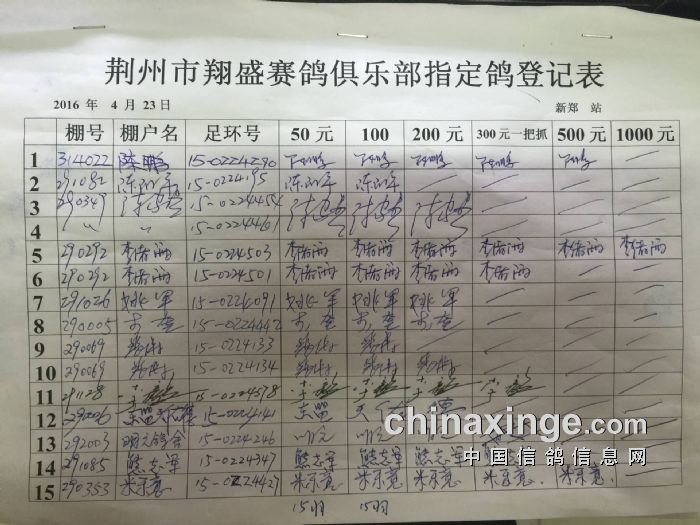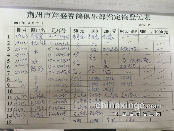2017年11月22日全国千公里联赛廊坊站比赛集鸽清单