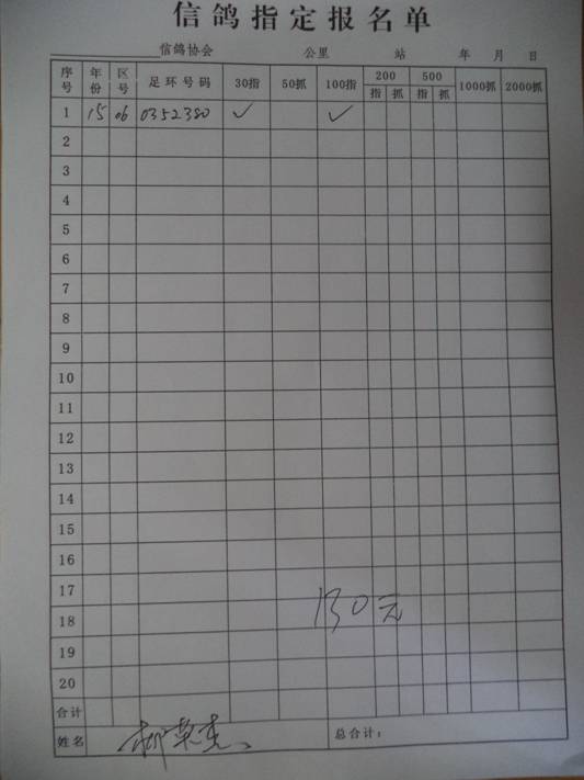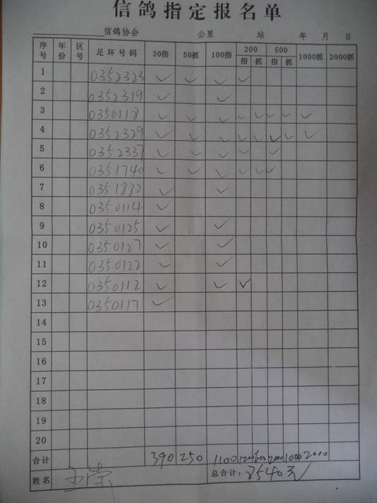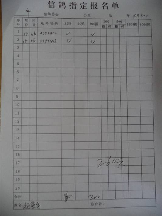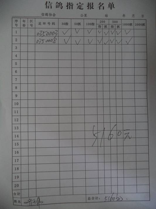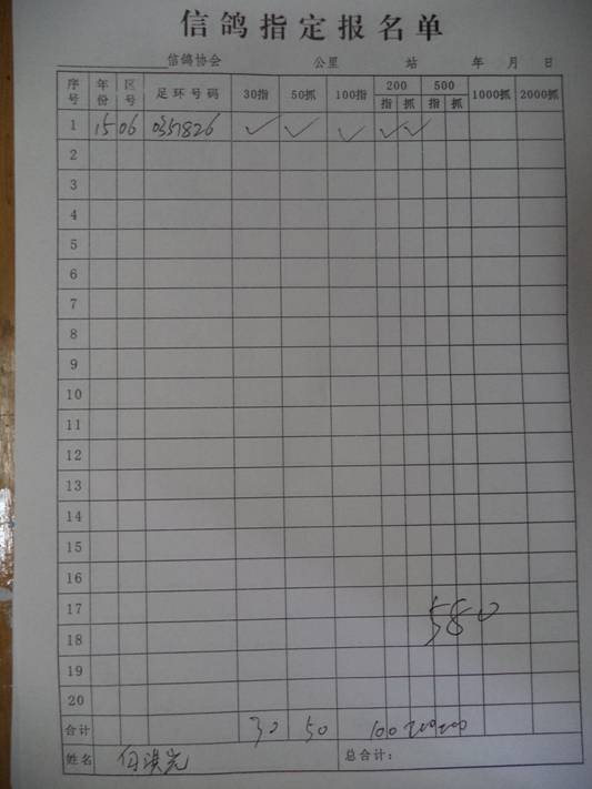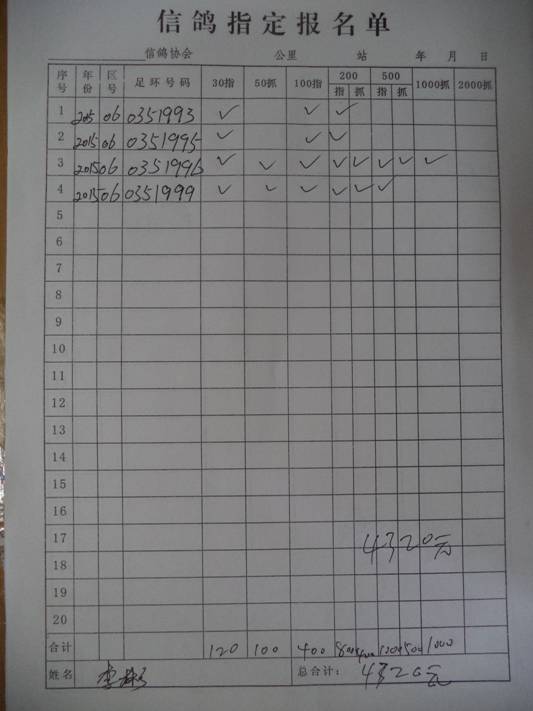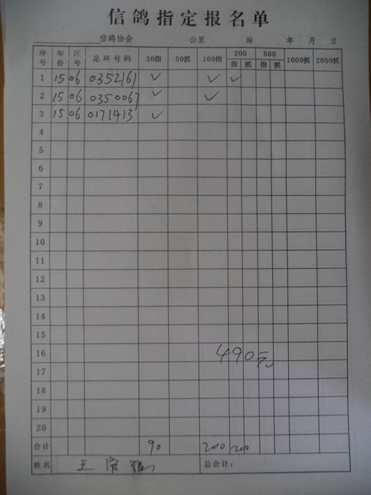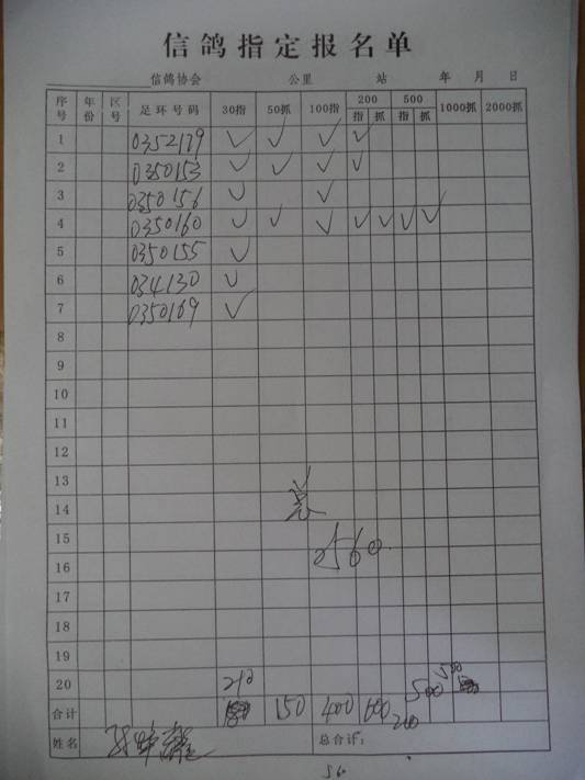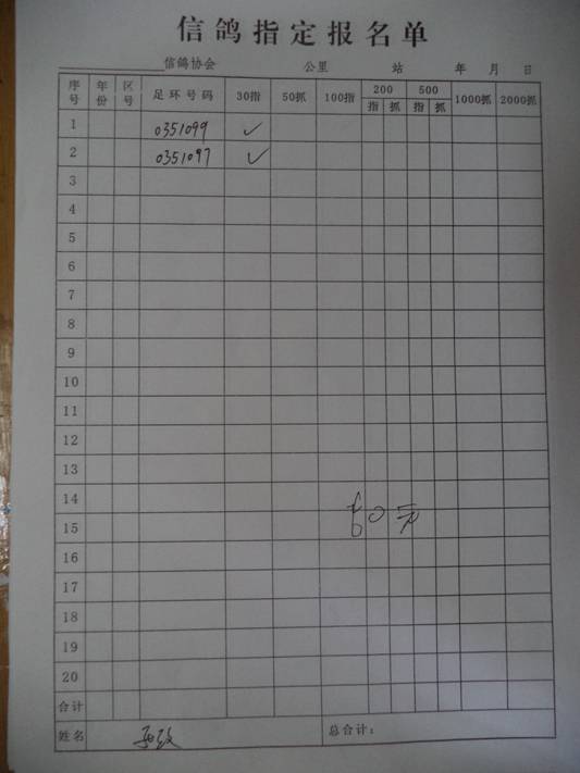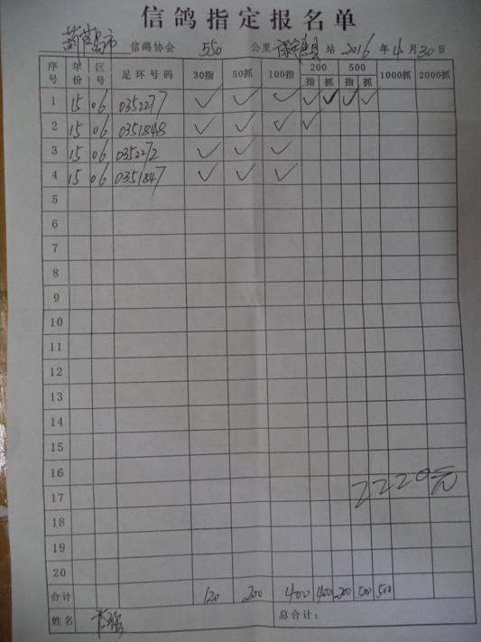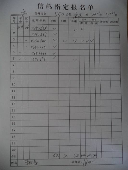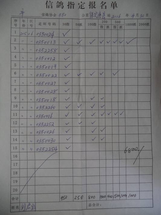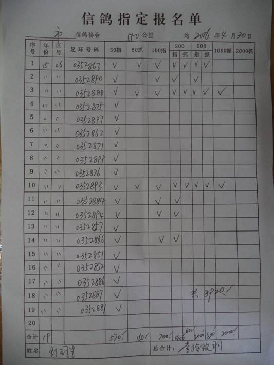 2016春市会大奖赛第三关指定鸽名单4