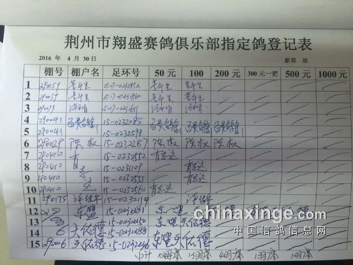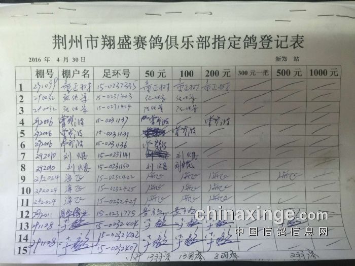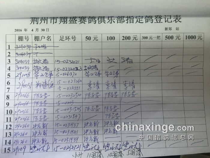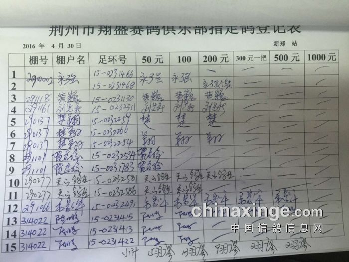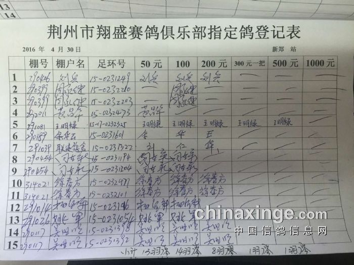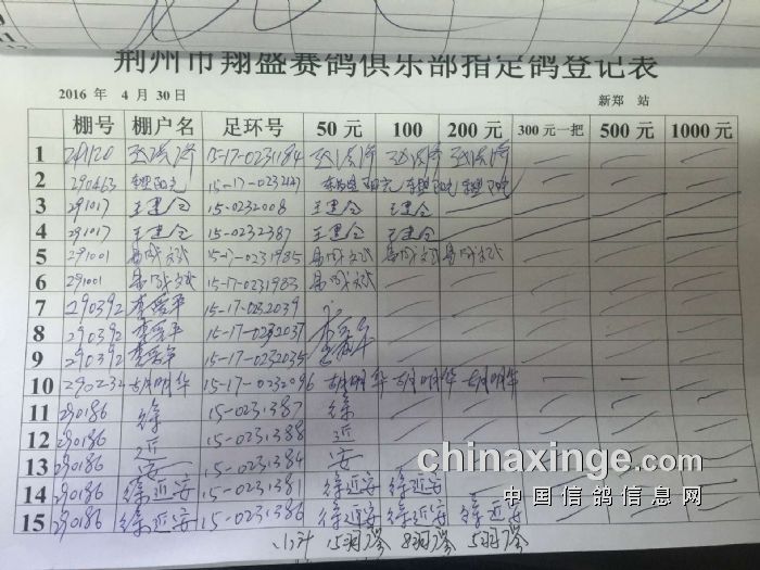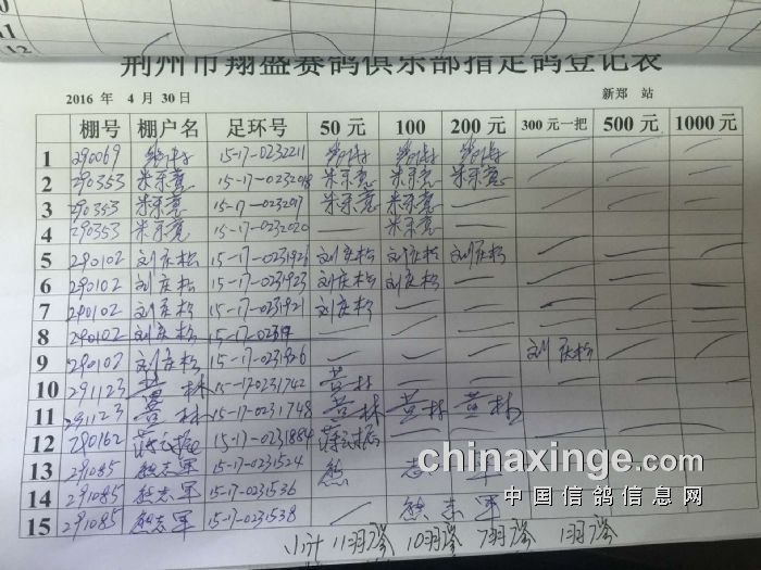 2017年11月26日480公里新郑站年度王中王比赛集鸽清单