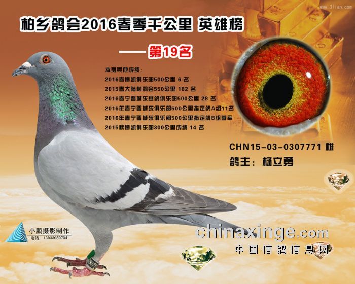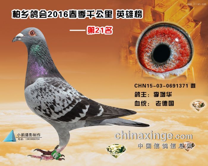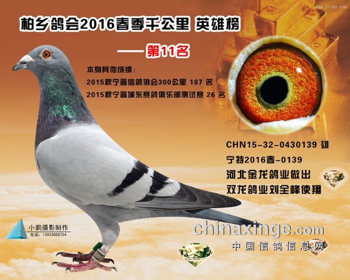 柏乡千公里获奖拍卖鸽赏析 柏乡鸽会千公里优胜鸽定于5月5日在中国信鸽信息网柏乡鸽会网站拍卖平台进行拍卖。敬请关注。鸽会联系电话13582498842魏建永。13653391332成现夺。鸽会QQ2291576427.微信号13582498842.