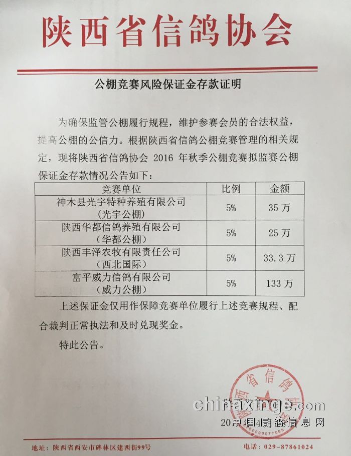 2016年秋季公棚竞赛保证金存款证明