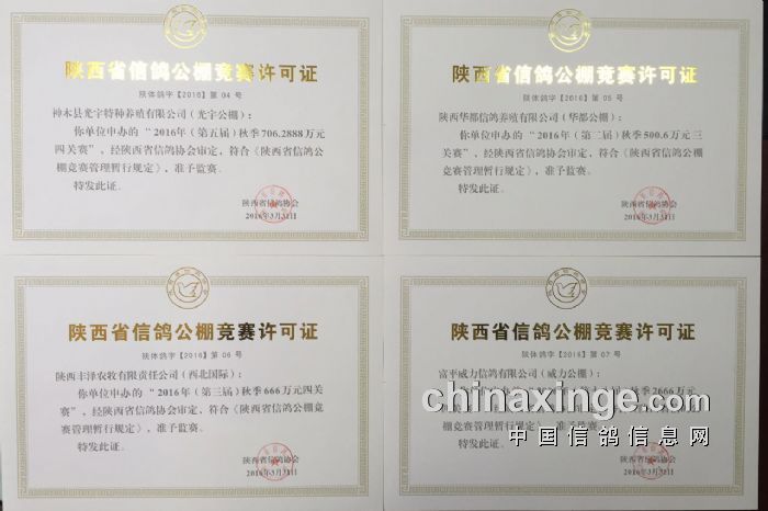 2016年秋季信鸽公棚竞赛许可证公示Ⅰ