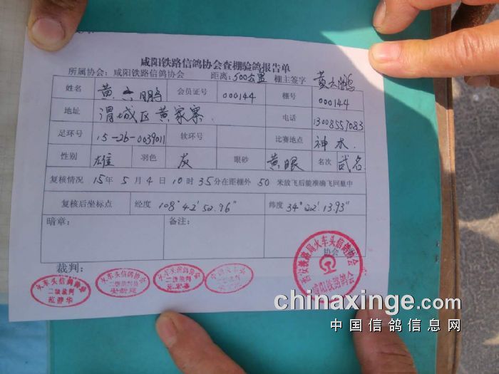 咸阳铁路信鸽协会2024年秋季第二关指定成绩