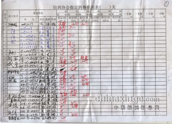 2016年春季700公里锡林浩特站指定鸽原始单据