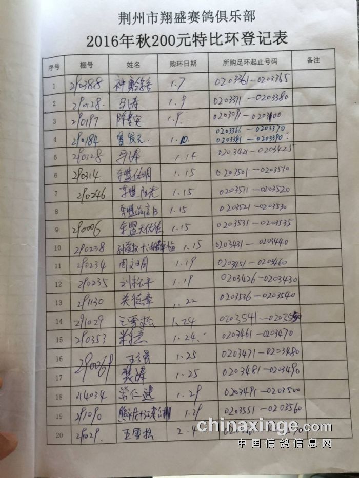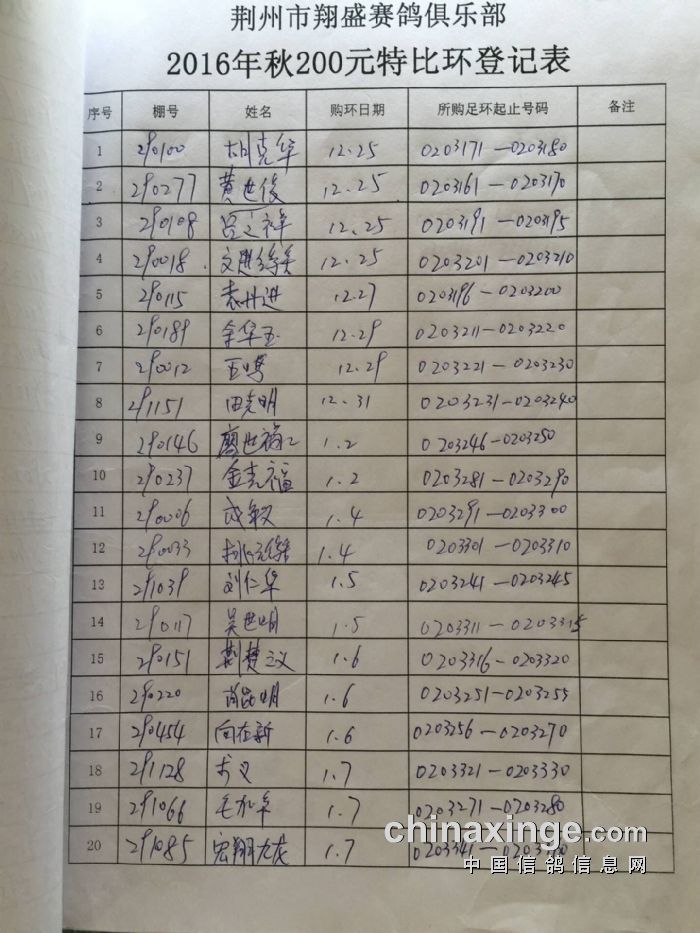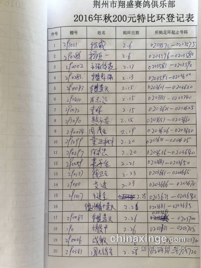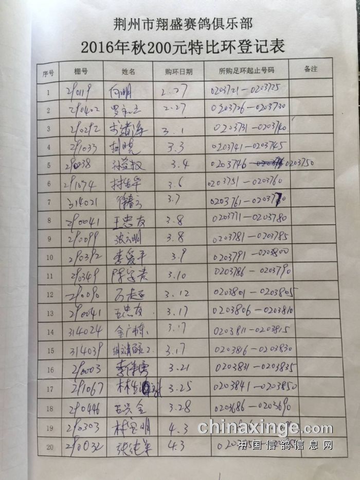 其中0203391-0203420 30枚足环为天门鸽会,未售出号段,此号段不能参加此项比赛