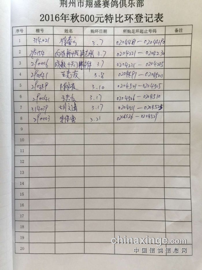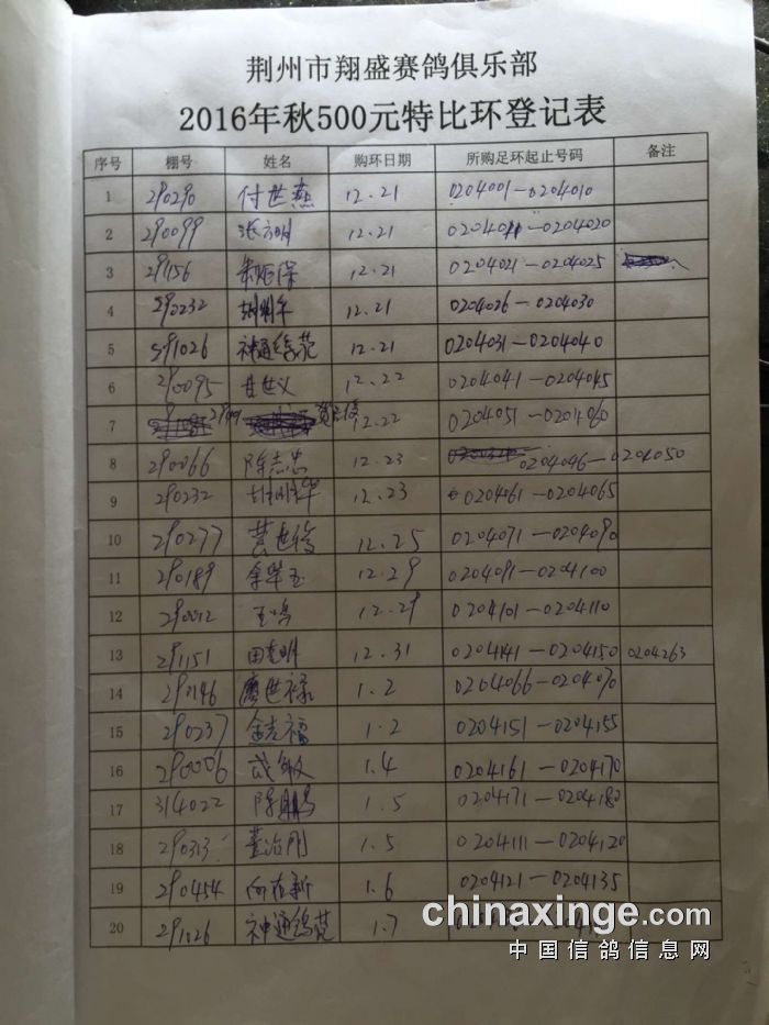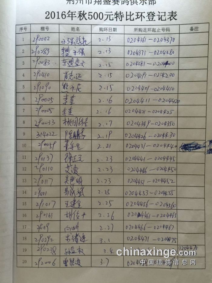 其中号段0204236-0204250为天门鸽会未售出号段,不参与比赛