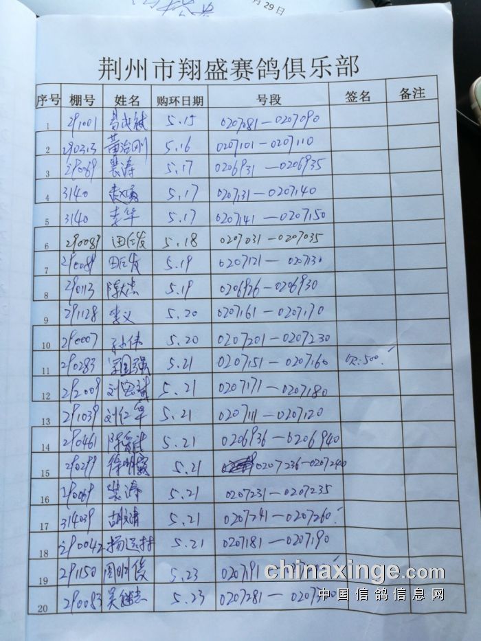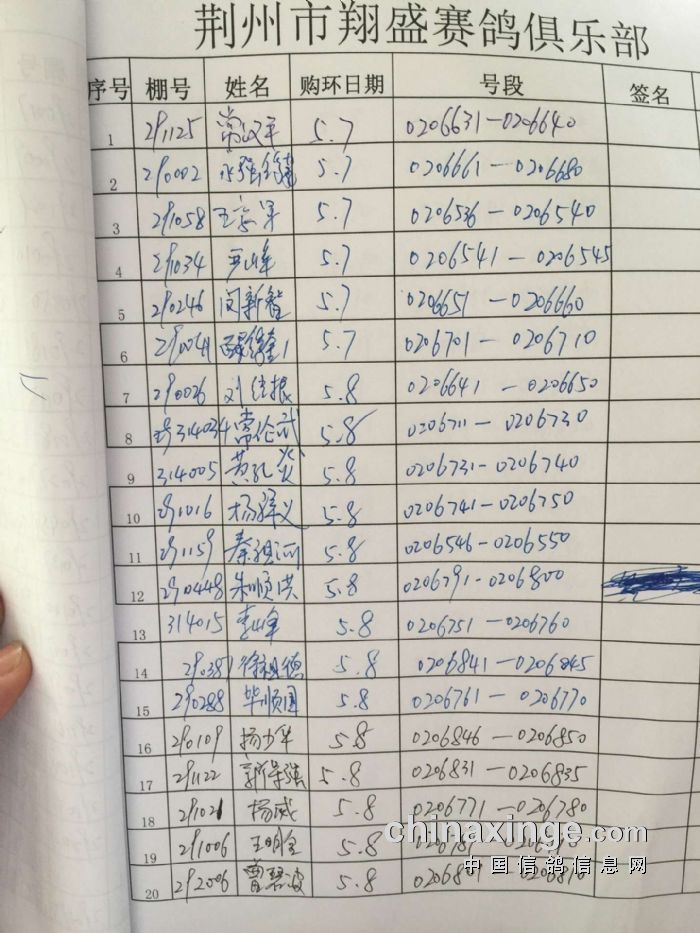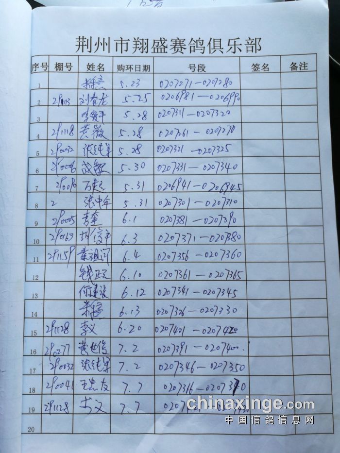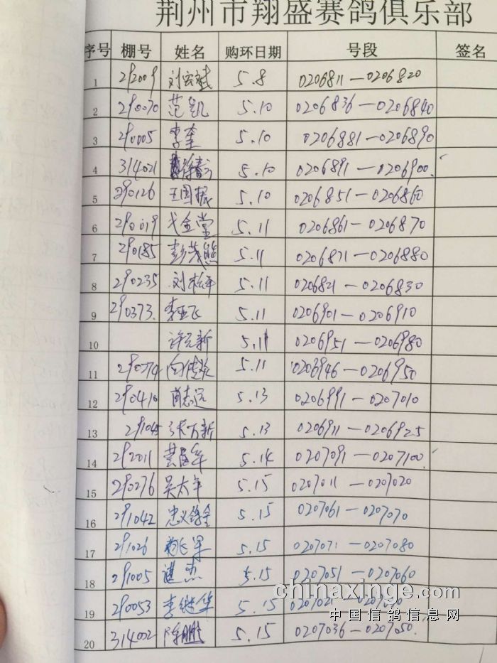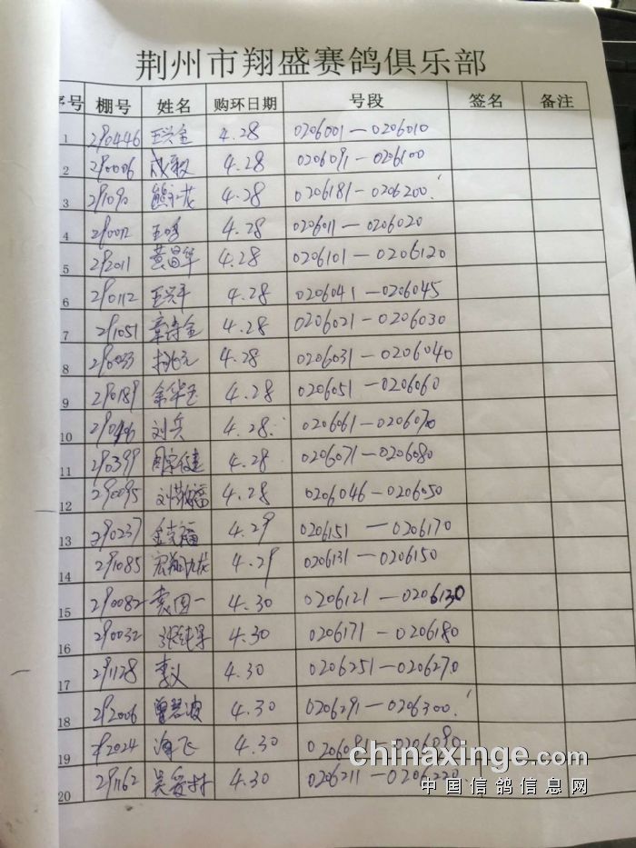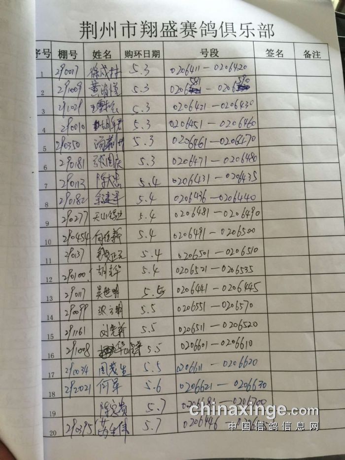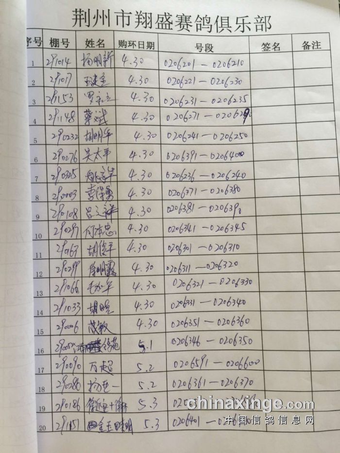 2017年11月22日全国千公里联赛廊坊站比赛集鸽清单