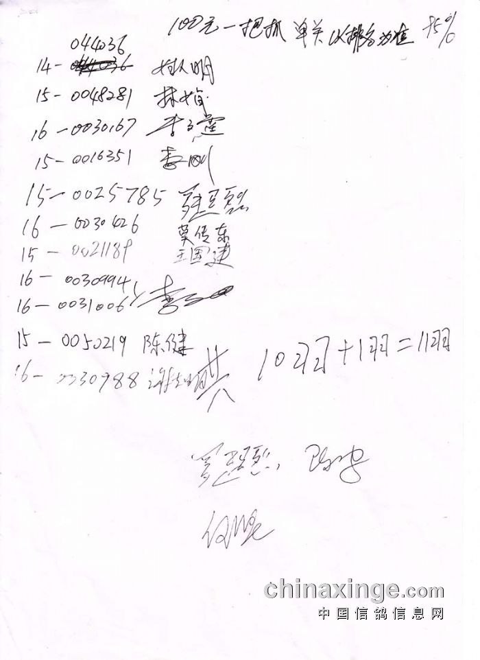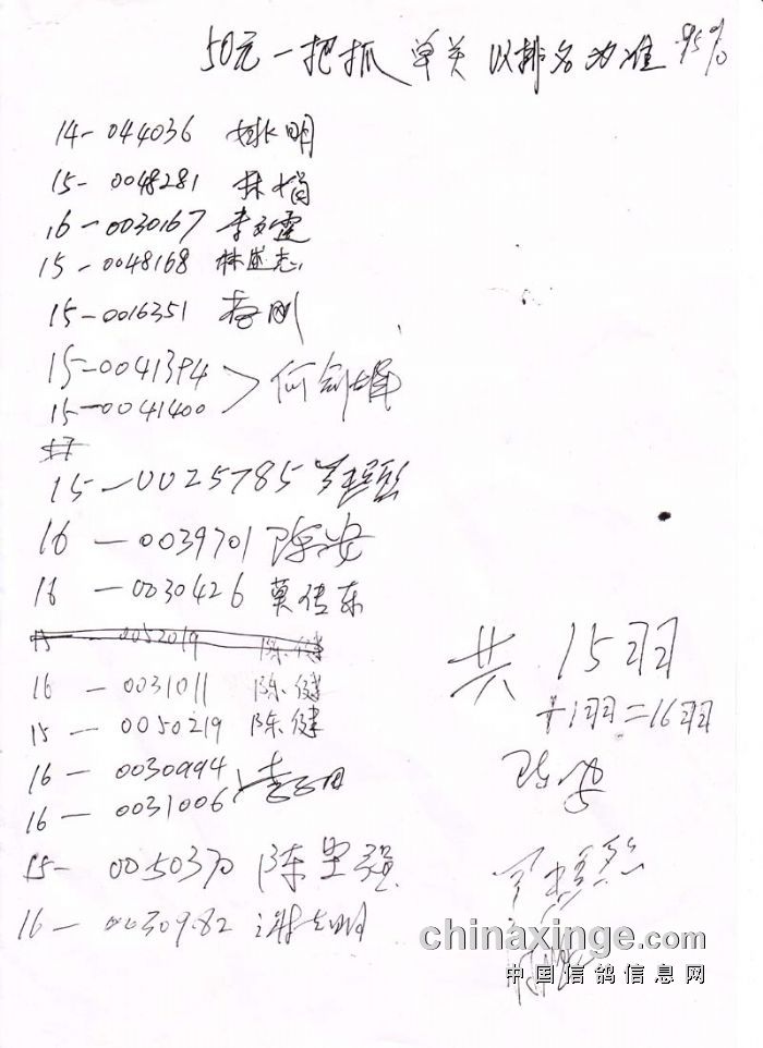 广西北海信鸽协会2016年三关赛单关指定鸽名单