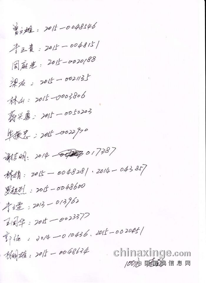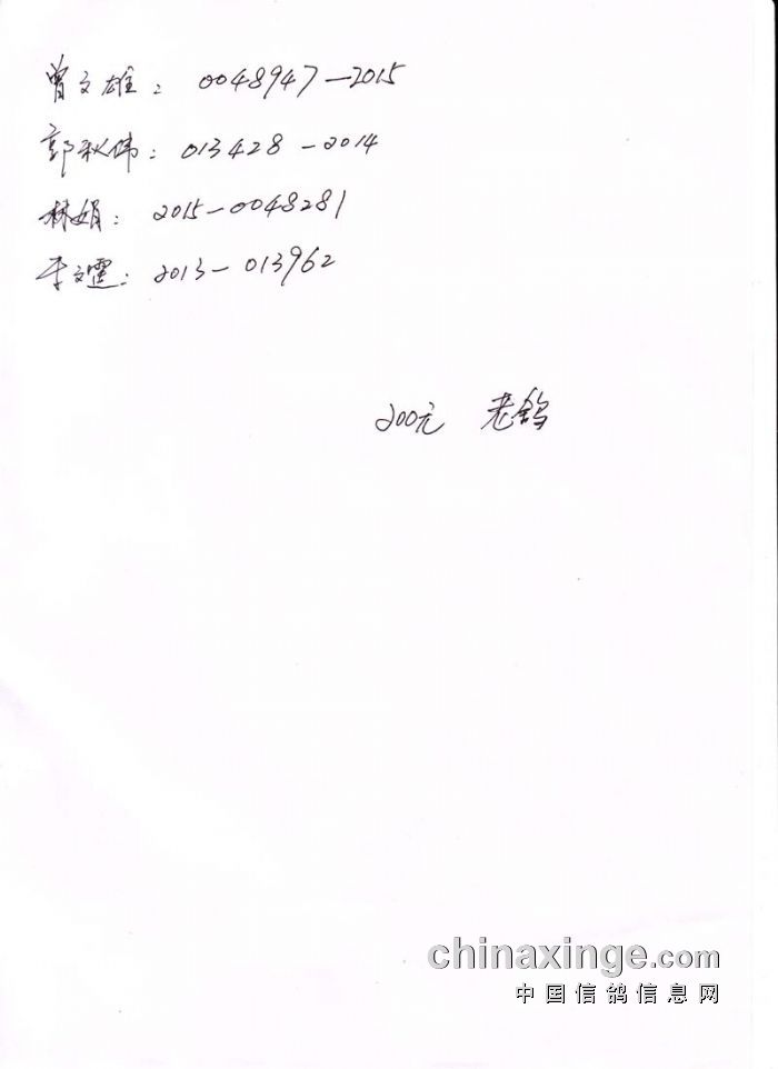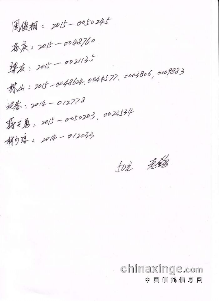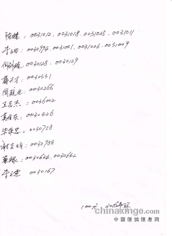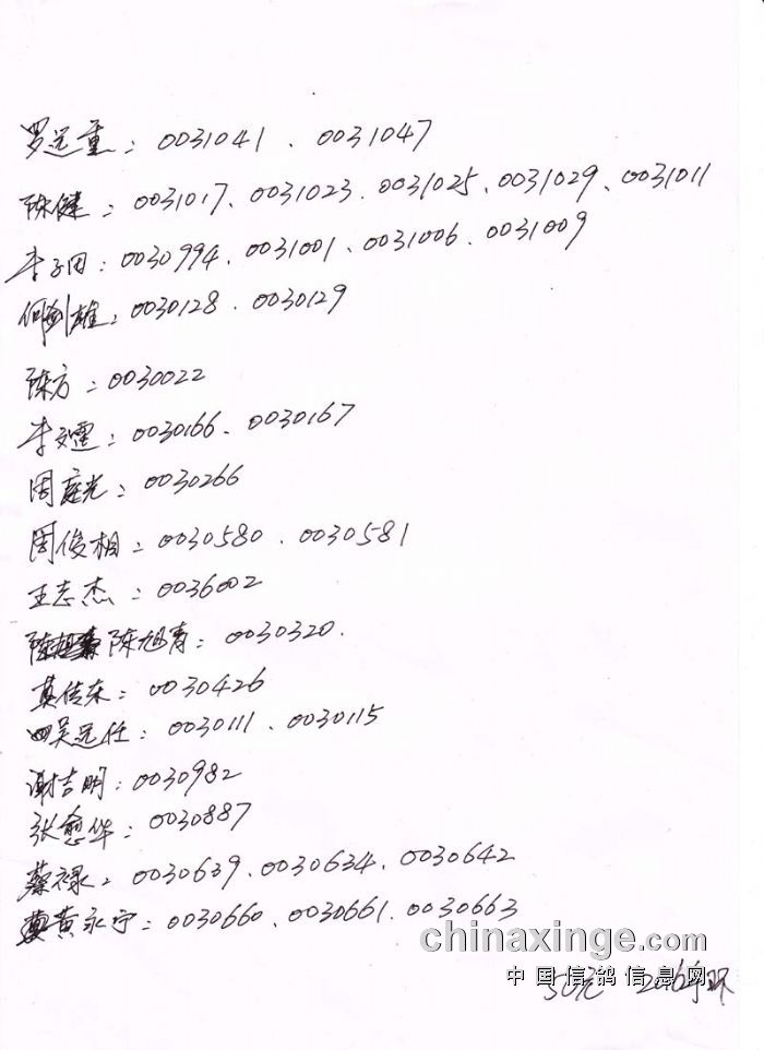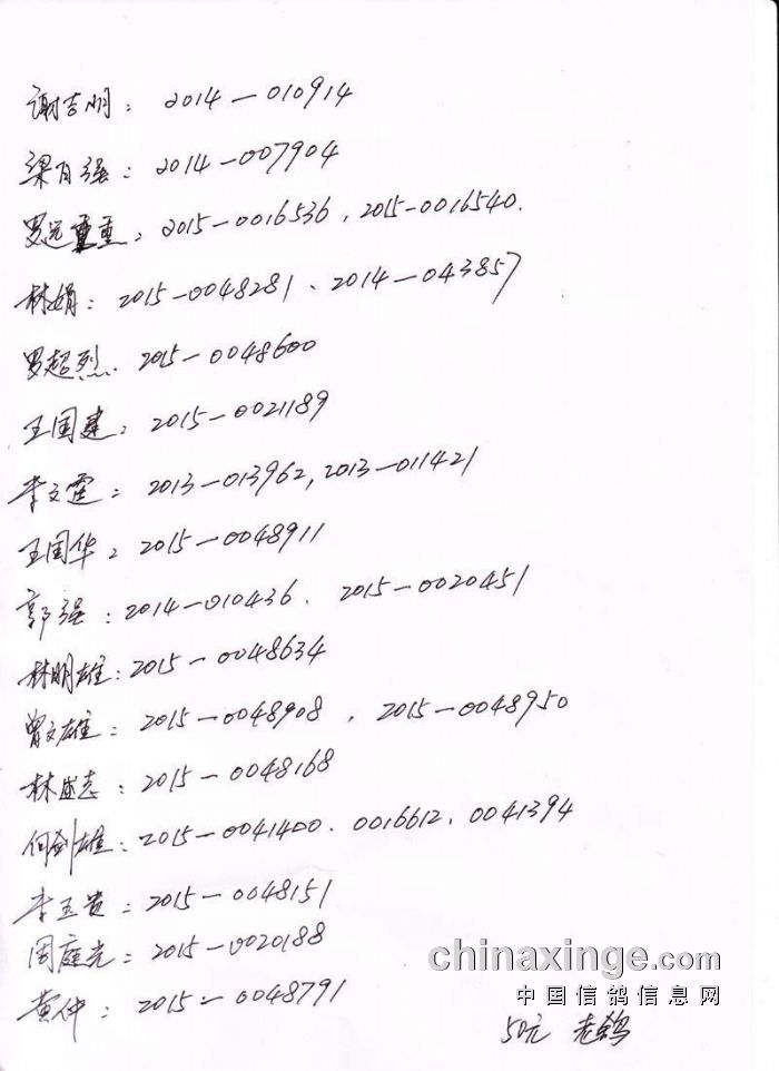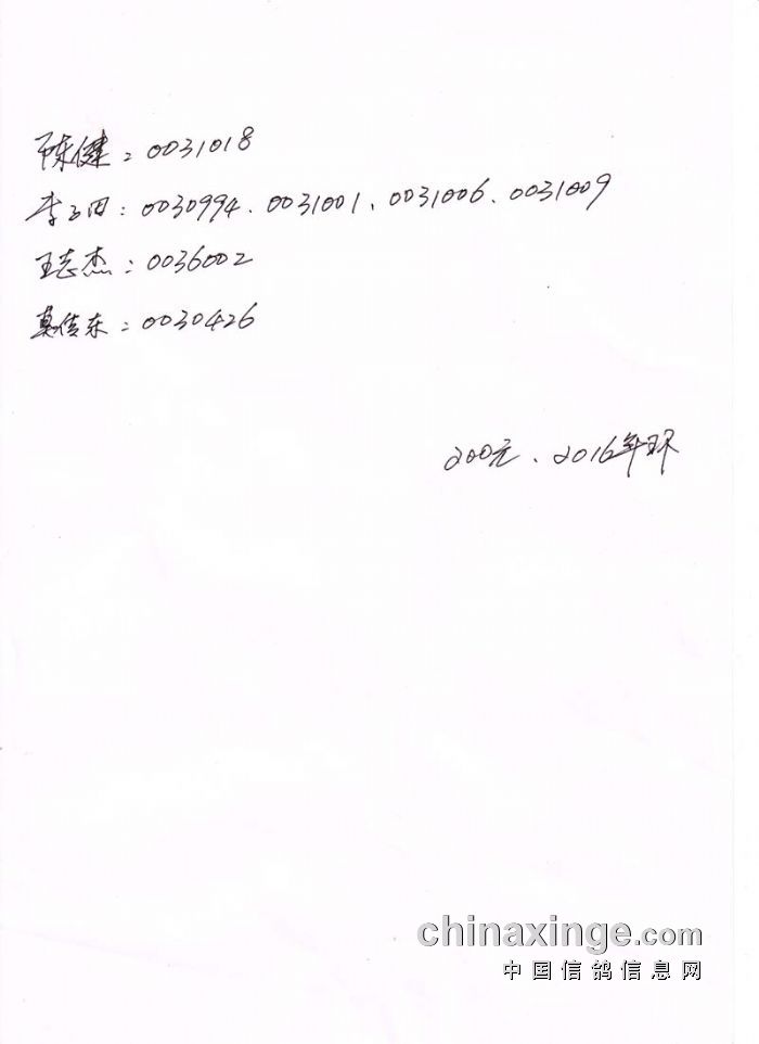 广西北海信鸽鸽协会2016年三关赛暗插名单