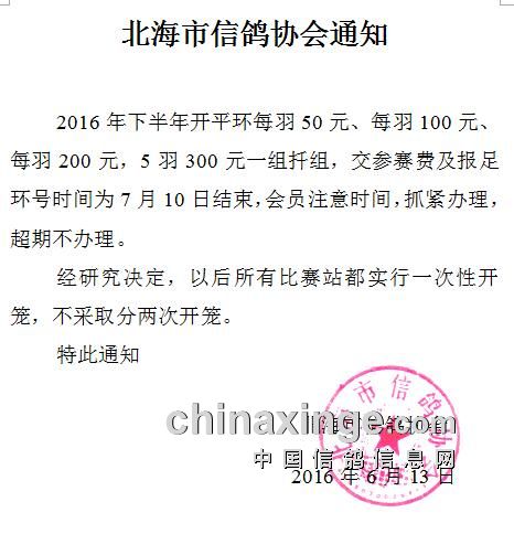 北海市信鸽协会通知
