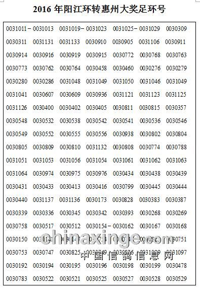 2016年阳江环转惠州大奖足环号