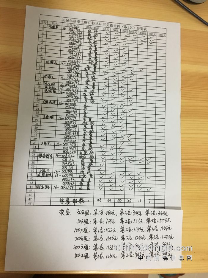 2016年秋季士旺杯特比环指定鸽暗插参赛表--取3名