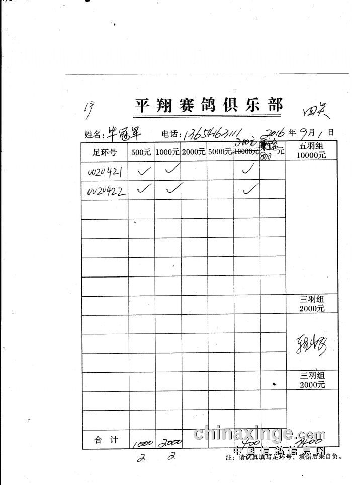 平翔信鸽俱乐部2021年秋季特比环截止1月4日售环2150枚