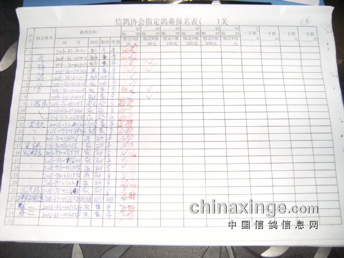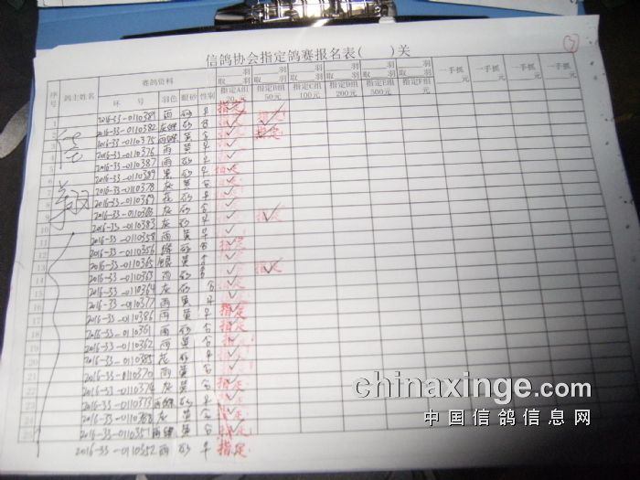2016年秋200公里巴西服务区站指定鸽原始单据