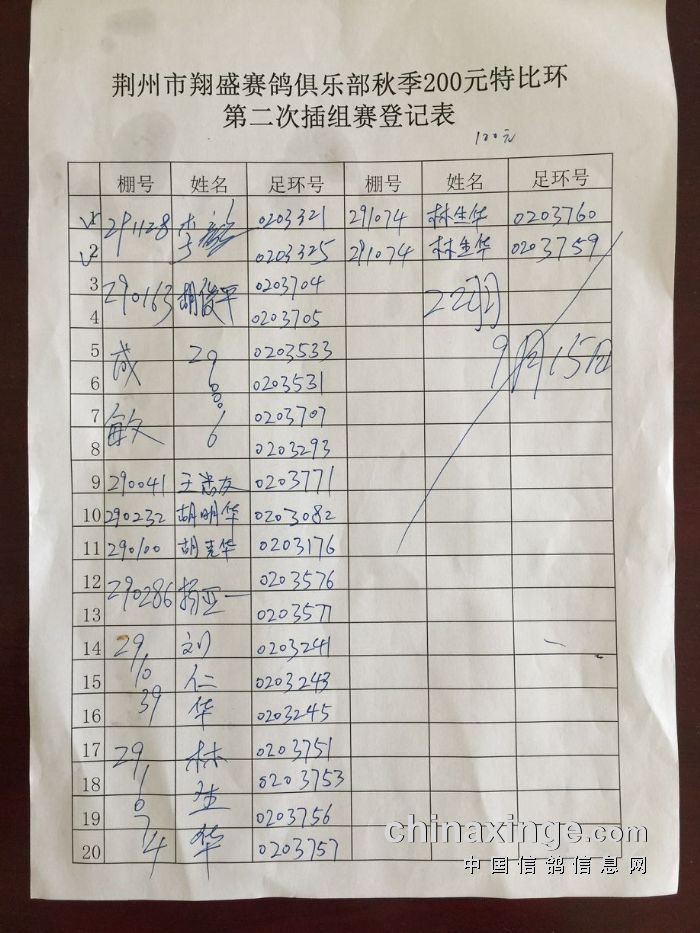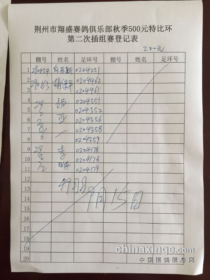 2017年11月22日全国千公里联赛廊坊站比赛集鸽清单