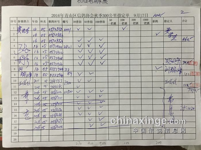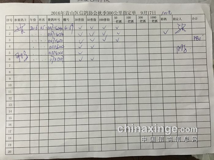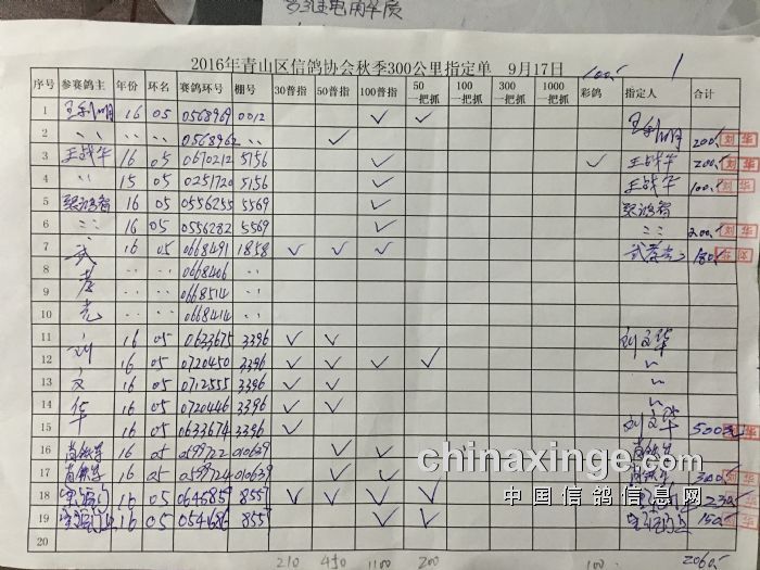 包头市青山区信鸽协会2021年秋季500元组特比环售环明细(2021年3月25日更新中.....)