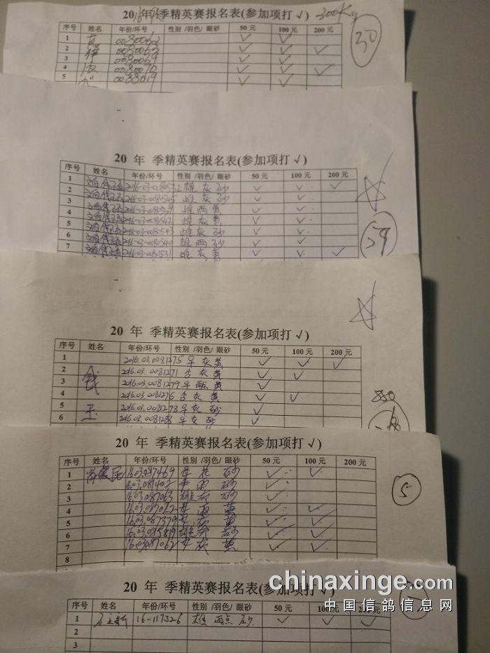 廊坊信鸽协会200公里比赛集鸽清单