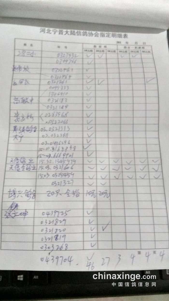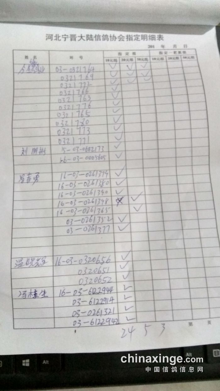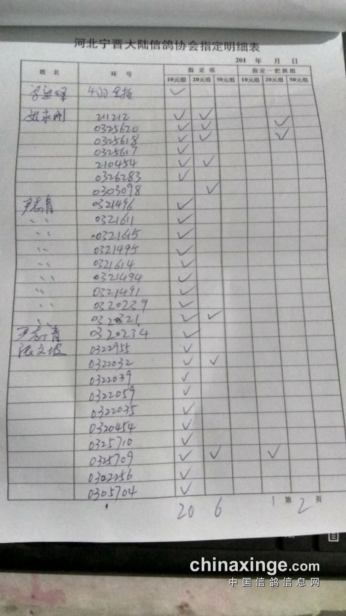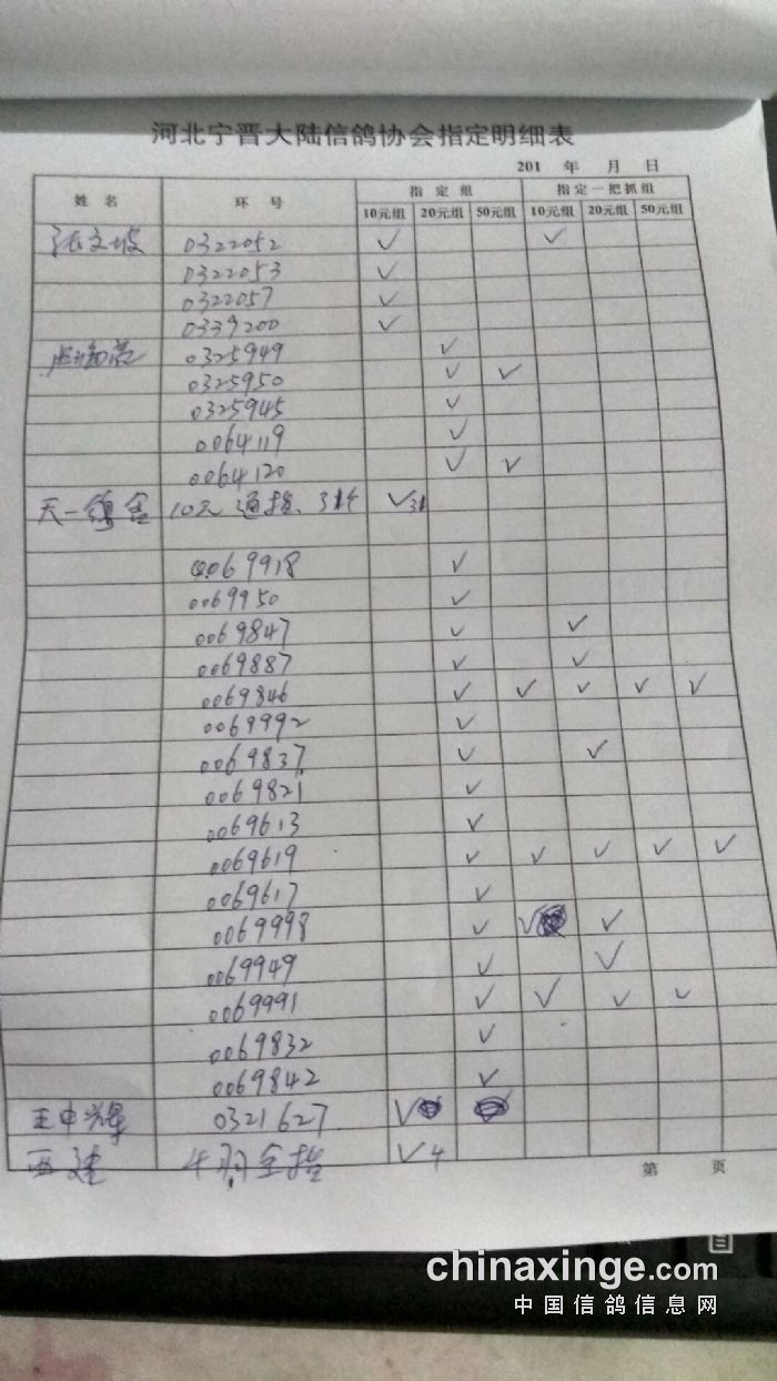 宁晋大陆信鸽协会25年秋200公里清丰成绩