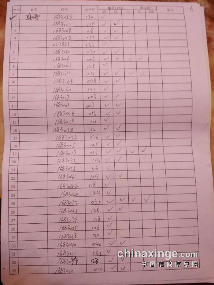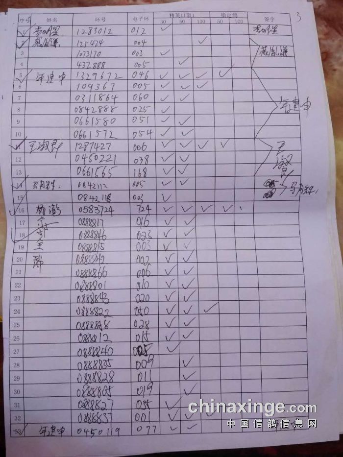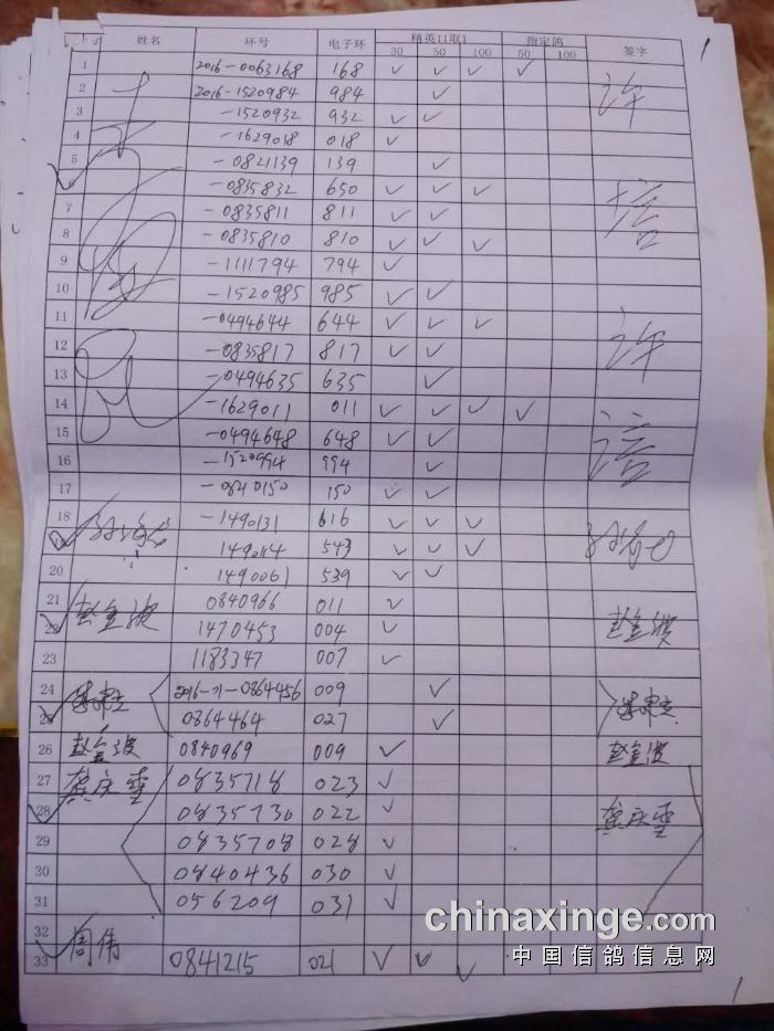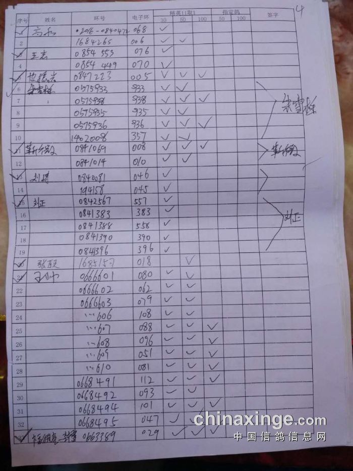 25年大兴“金洲杯”100环一关有效归巢(按人名)