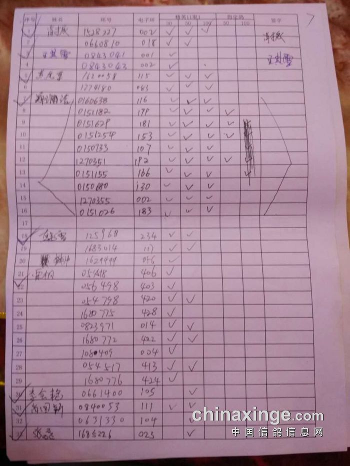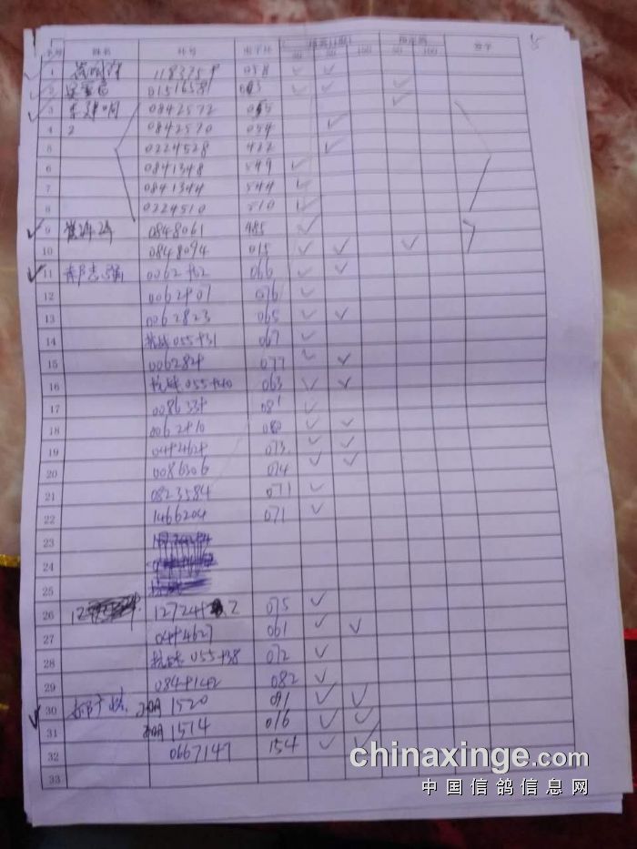 25年大兴“金洲杯”千元环一关有效归巢(按棚号)