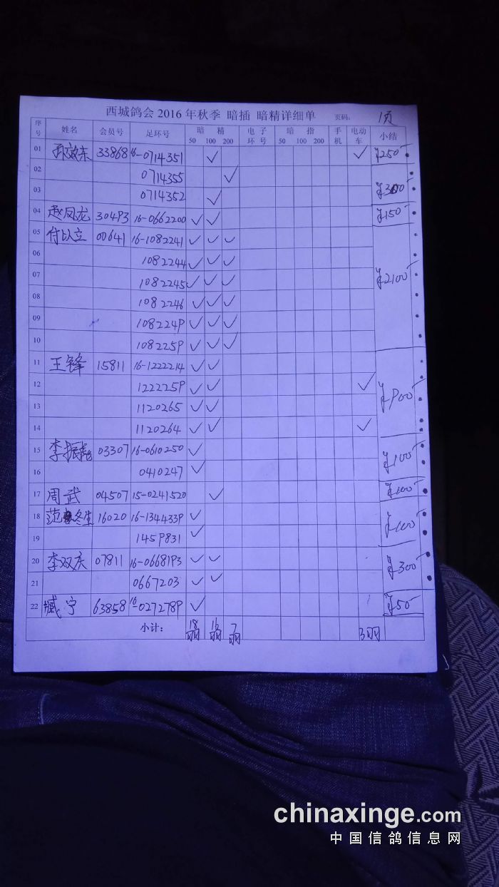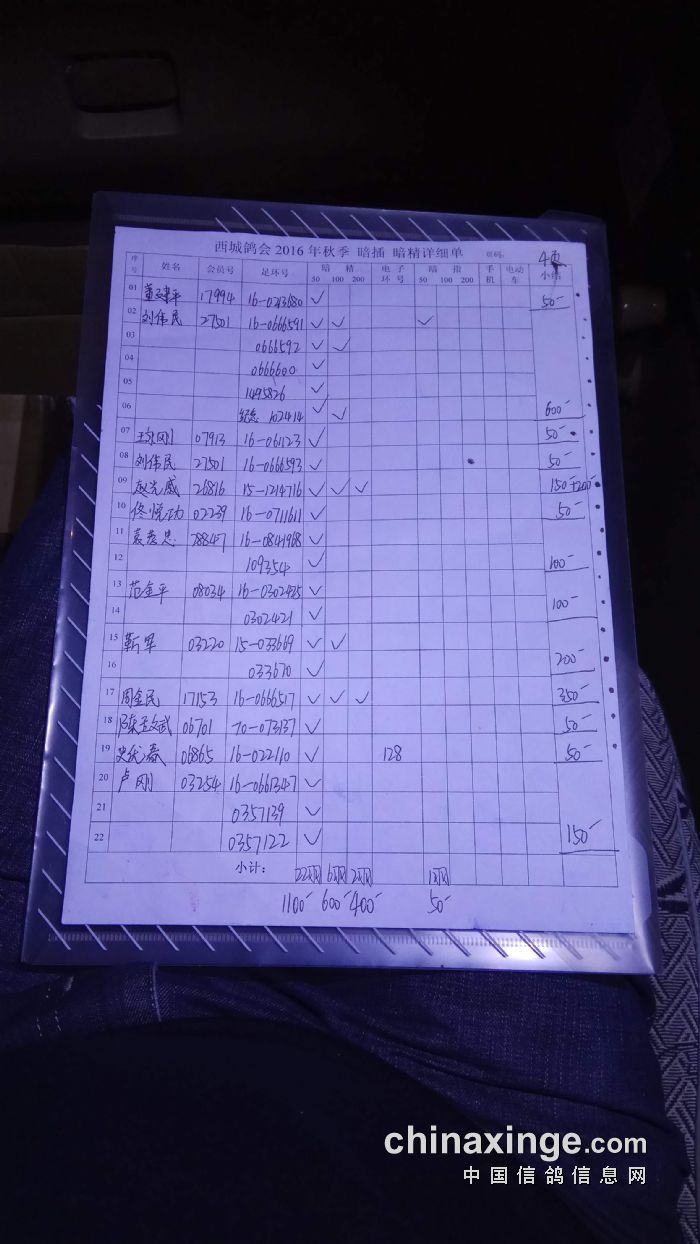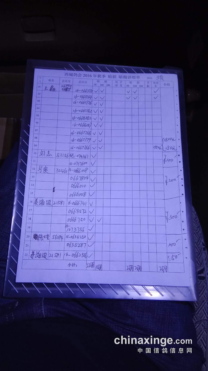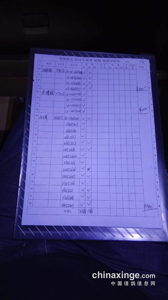 西城第八届“跨双年度最佳鸽舍、最佳鸽手”秋季积分光荣榜排名