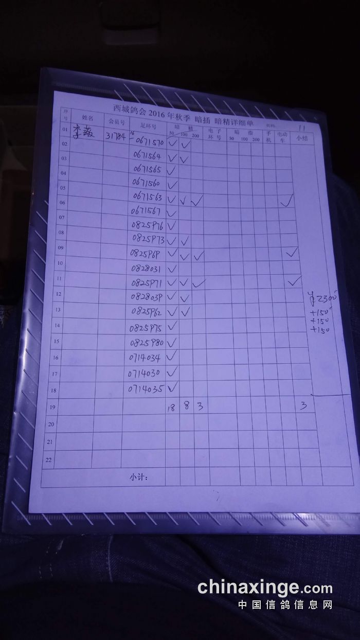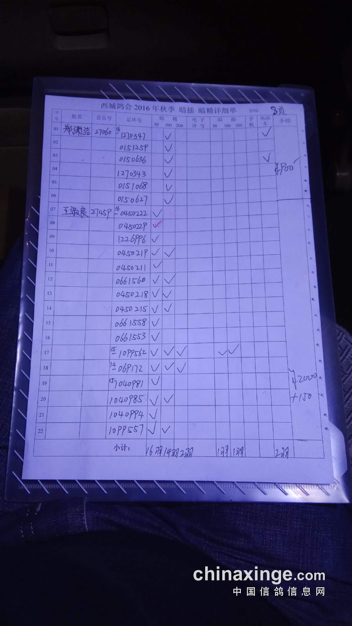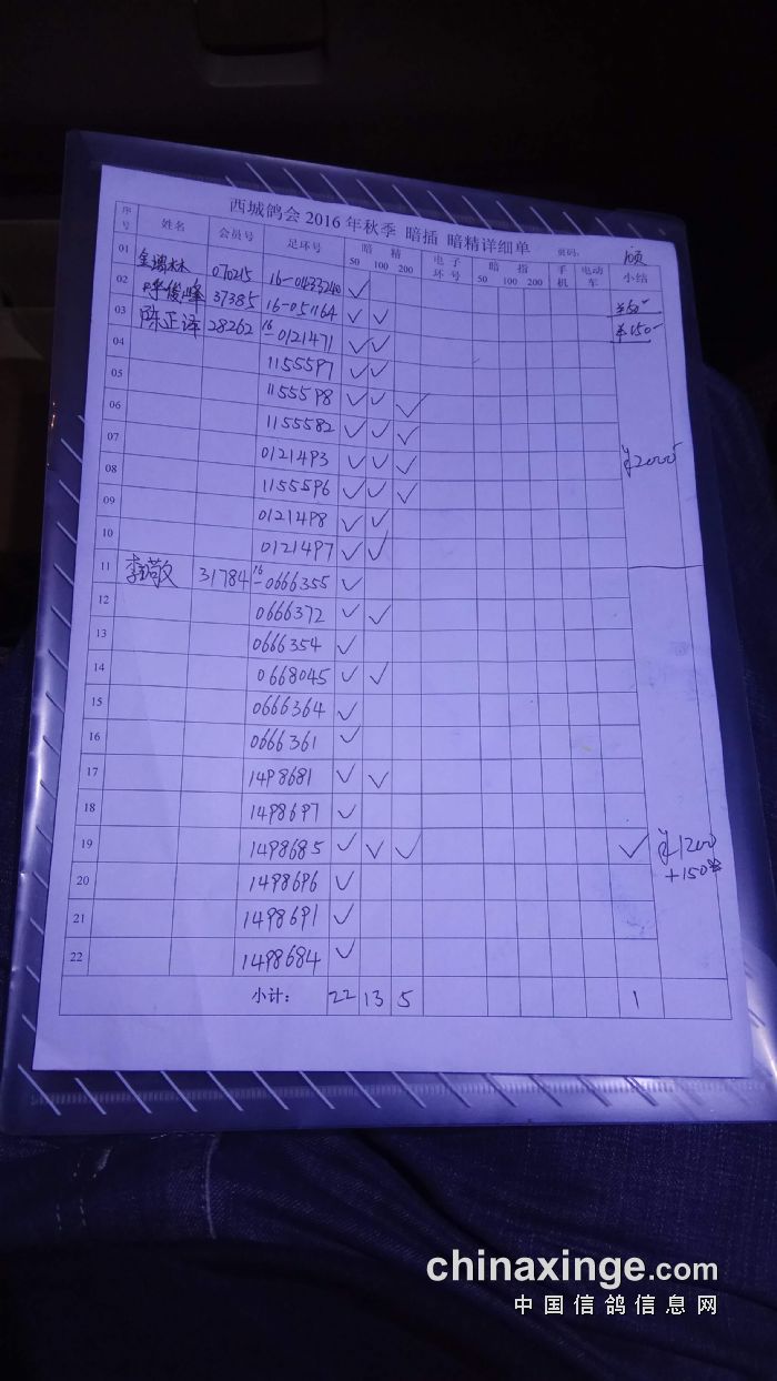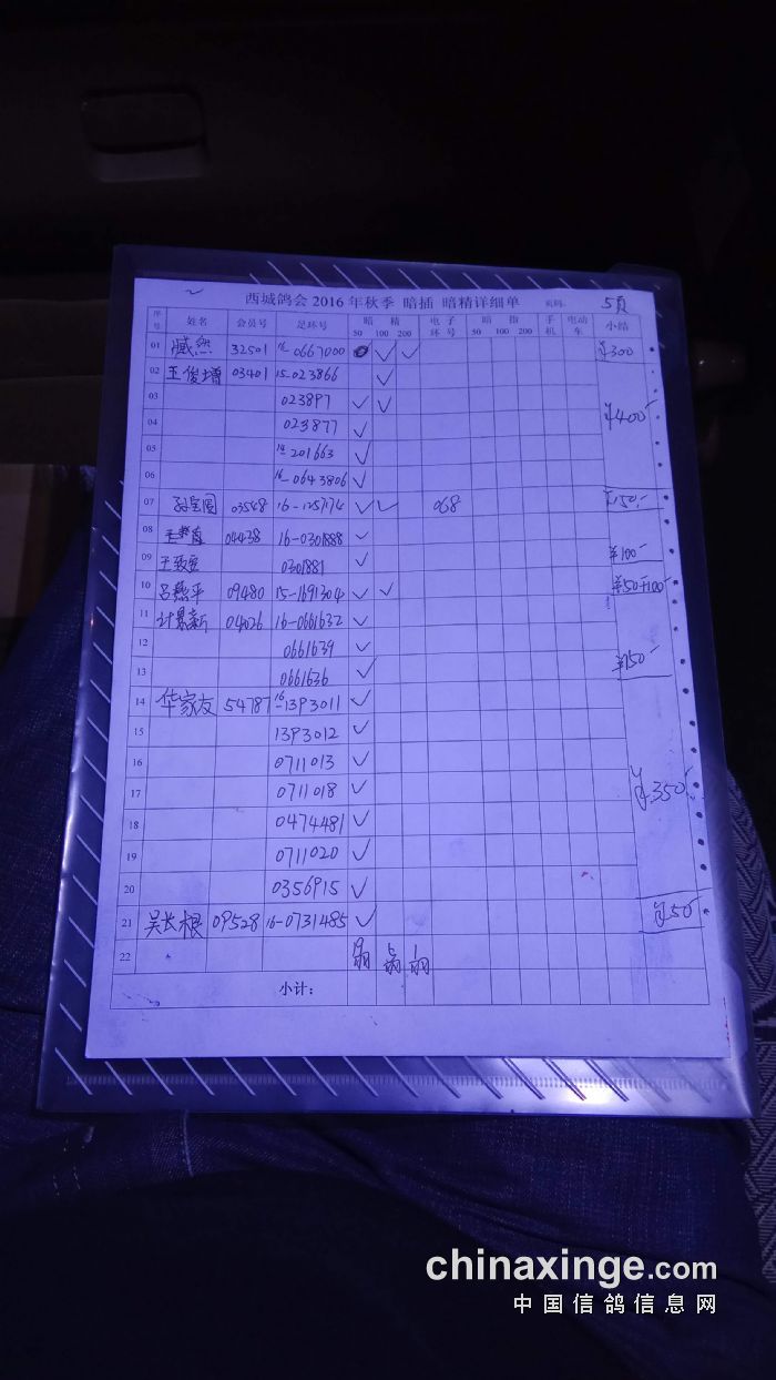 西城第八届“跨双年度最佳鸽舍、最佳鸽手”秋季积分光荣榜排名