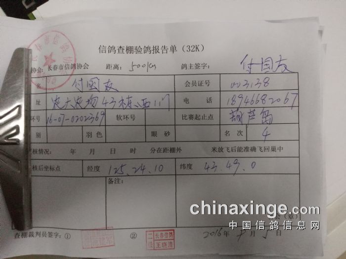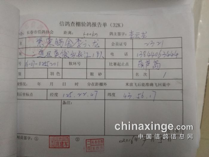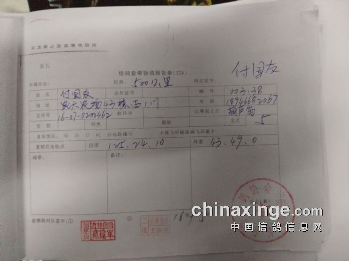 500公里比赛前5名验鸽