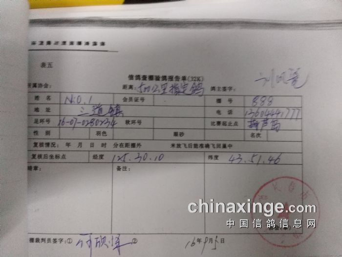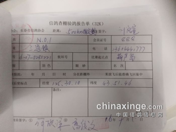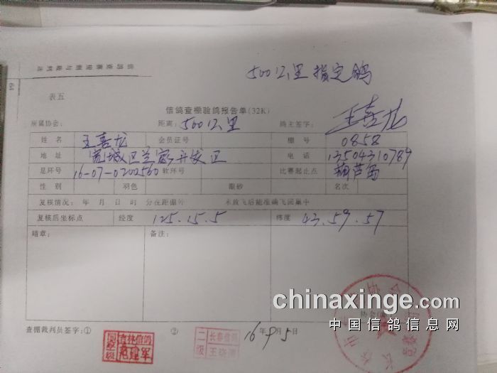 500公里比赛指定鸽验鸽