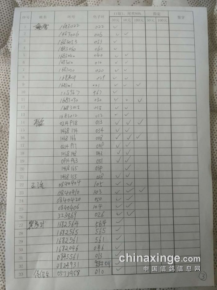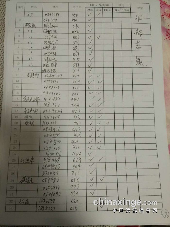 25年大兴“金洲杯”100环一关有效归巢(按人名)