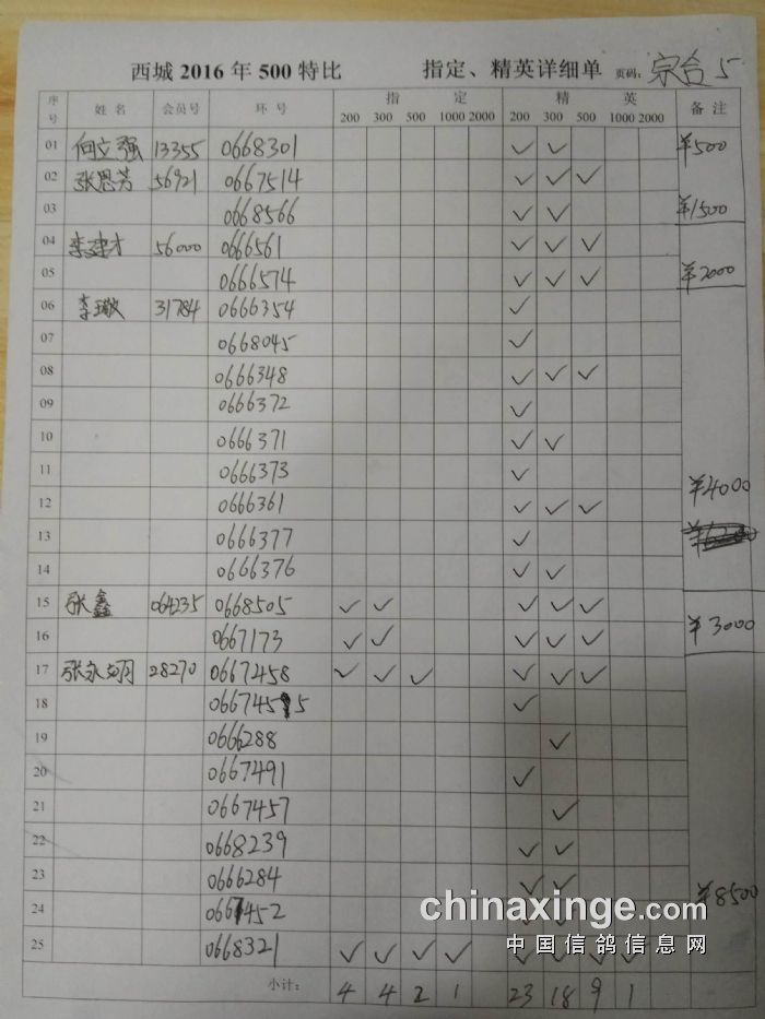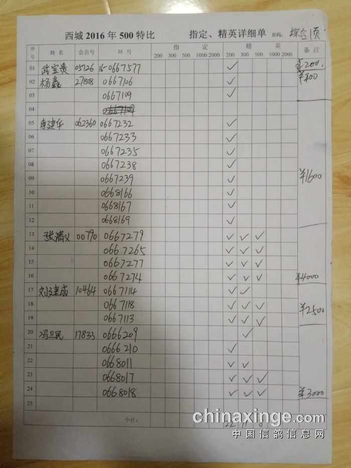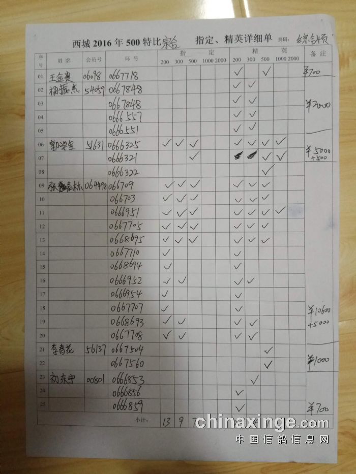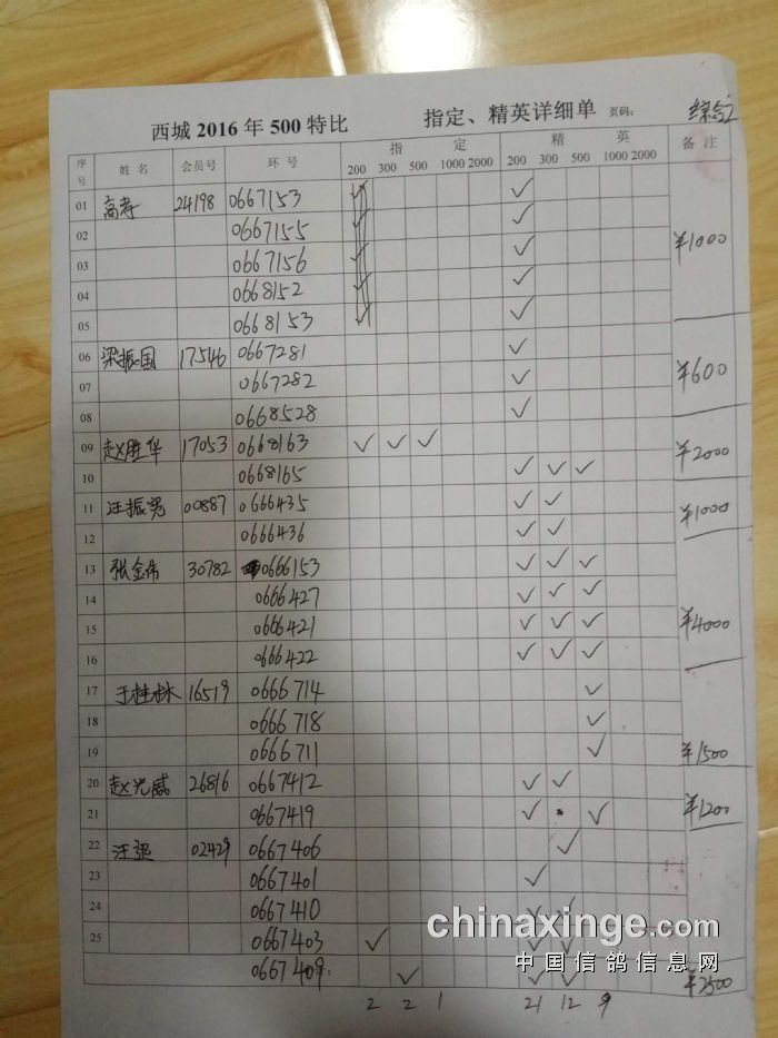 精英200元 106羽,精英300元 73羽,精英500元 41羽, 精英1000元 5羽