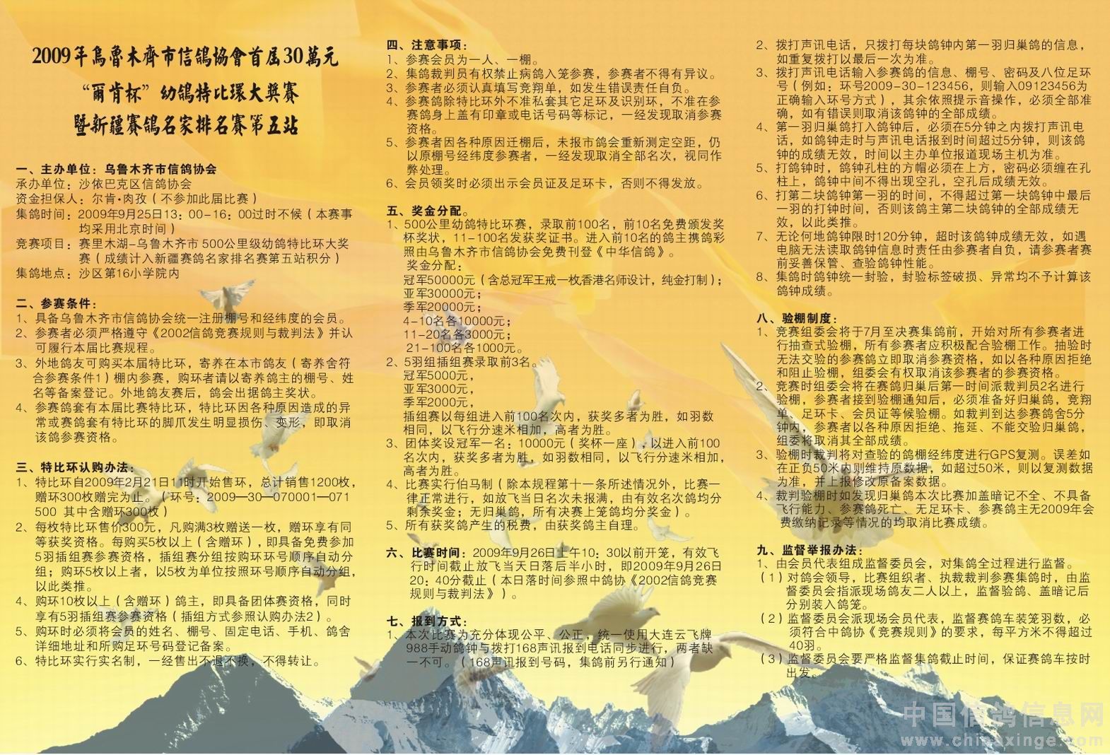 集鸽时间:2009年9月25日13:00-16:00过时不候(本赛事均采用北京时间)