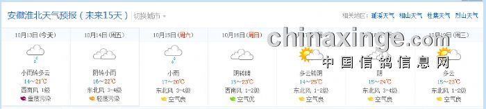 10月13号宁阳----淮北200公里沿途天气预报