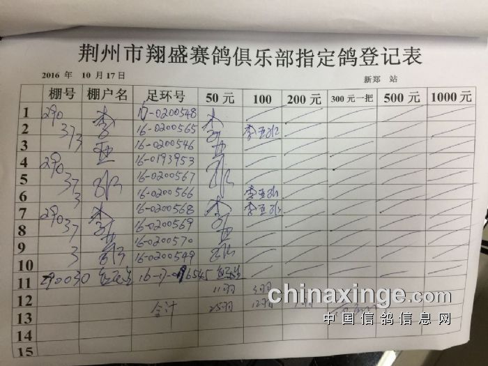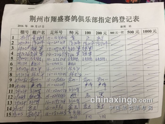 新郑500公里指定鸽明细